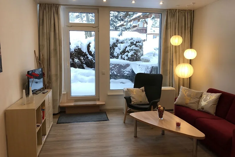 Im Wohnbereich finden Sie ein TV Gerät, Radio und eine Stereoanlage. Lassen Sie den Tag bei einem spannendem Film ausklingen oder lauschen Sie ruhigen Klängen auf der Stereoanlage um zu entspannen. Zwei Sofas lassen sich ganz bequem am Abend zu einem Doppelbett ausklappen und lässt Sie in die Traumwelt eintauchen.