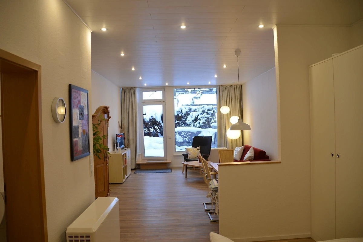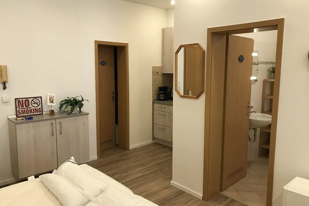 In unserer 53 qm grossen Studio Wohnung stehen Ihnen ein Wohn-/Schlafraum mit Küchenzeile, eine gemütliche Essecke und ein Badezimmer zur Verfügung.