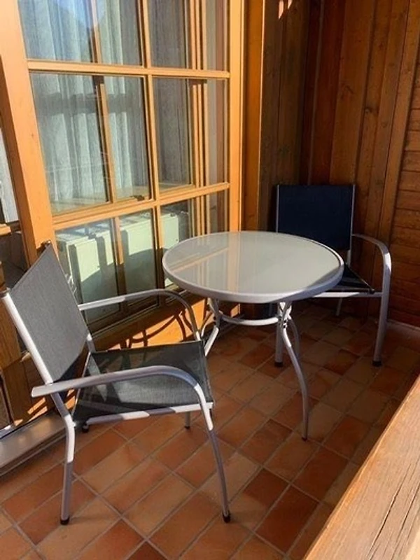 Die Wohnung hat einen eigenen Balkon, der nach Westen ausgerichtet ist und einen Blick auf den gemeinschaftlichen Garten bietet, der von allen Gästen genutzt werden kann. Hier können Sie die Sonne und die gute Luft geniessen.