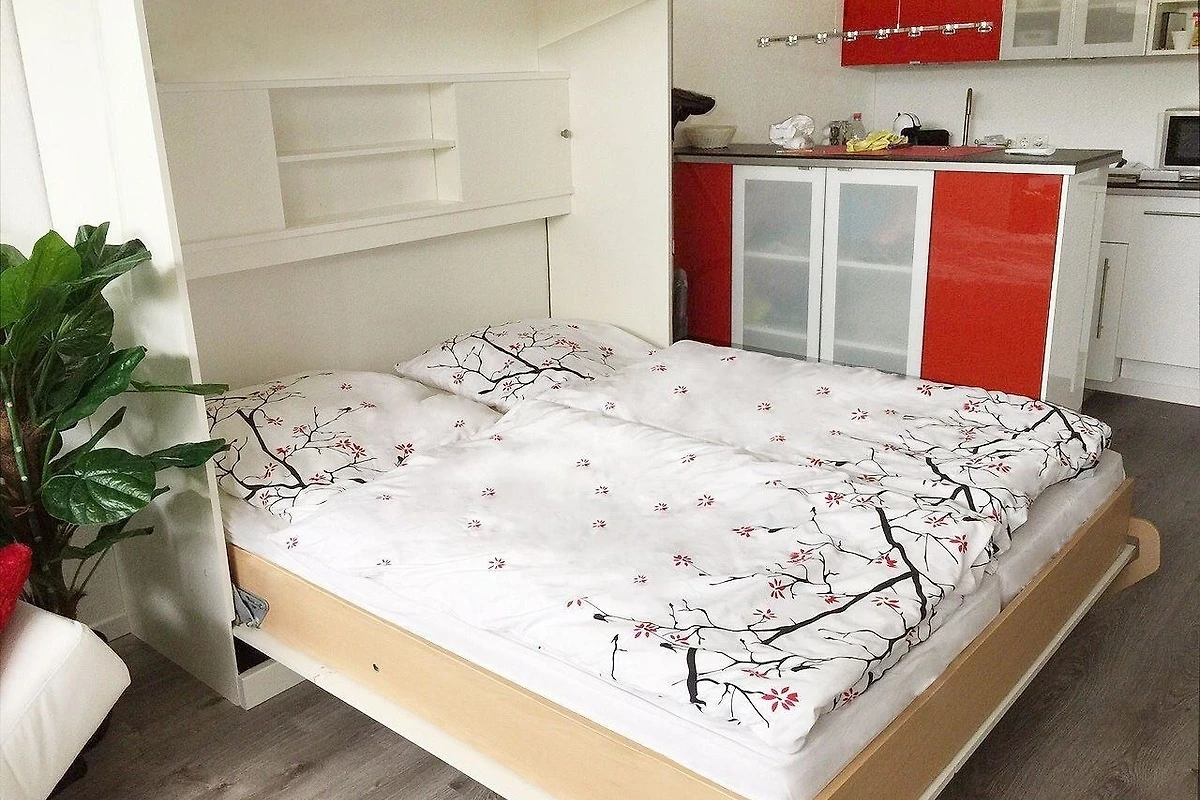 In dieser 30 m² grossen Einzimmerwohnung im ersten Stock bleiben keine Wünsche offen. Die moderne Ausstattung und die grosse Fensterfront schaffen eine helle und freundliche Atmosphäre. Auf dem komfortablen Schrankbett lässt es sich bequem schlafen. Für Kinder ist die Schlafcouch bestens geeignet.