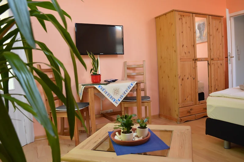 Zum Musik hören steht Ihnen in der Ferienwohnung in Warnemünde eine Stereoanlage zum Fernsehen haben Sie einen LED-Flachbild-TV.