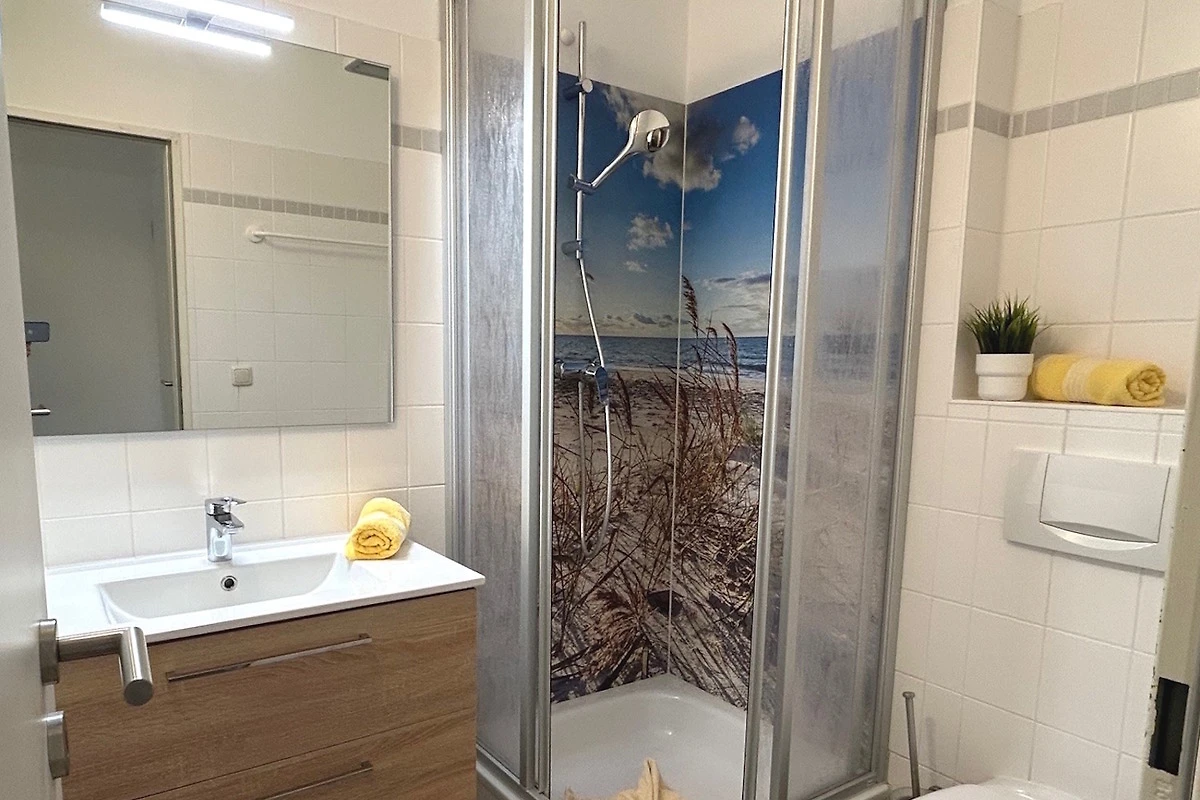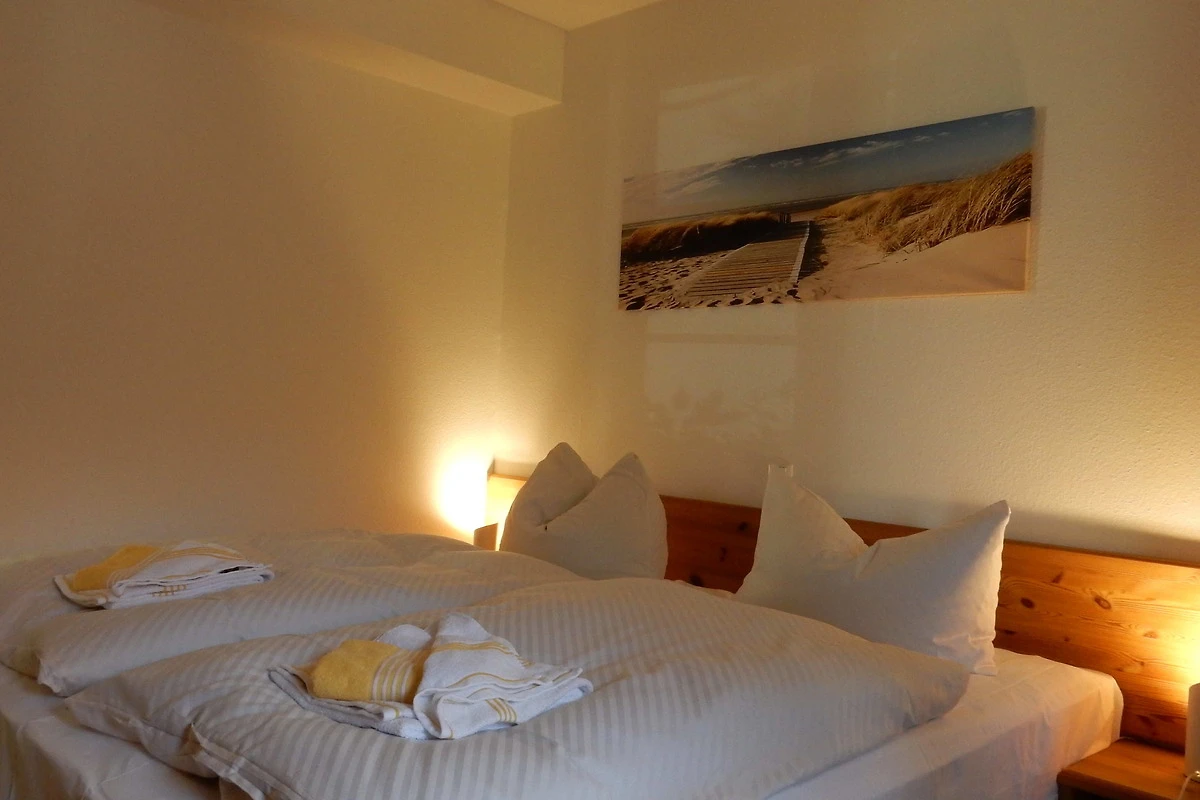 WLAN über ein gesichertes Netwerk können Sie in allen Wohnungen empfangen. Zu unserem Service gehören bezogene Betten und Handtücher.