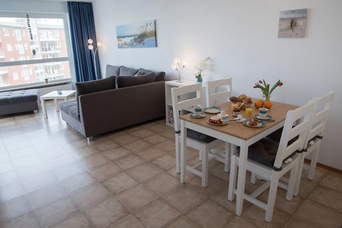 Die „Frische Brise FeWo 06.11“ in Cuxhaven ist eine moderne Ferienwohnung im 6. Stock, die auf 43 m² Platz für bis zu vier Personen bietet. Sie umfasst ein Schlafzimmer, ein Badezimmer und einen offenen Wohnbereich mit einer voll ausgestatteten Küche, die über Herd, Mikrowelle sowie Geschirr und Besteck verfügt. Zur weiteren Ausstattung gehören WLAN, ein Fernseher und ein Radio. Die gemeinschaftliche Nutzung von Waschmaschine und Trockner ist im Haus möglich. Entspannung findet man im beheizten Innenpool und der Sauna, während weitere Freizeitmöglichkeiten wie Tischtennis und Tennisplatz ebenfalls zur Verfügung stehen. Ein besonderes Highlight ist der überdachte Balkon mit Meerblick, ideal für erholsame Stunden. Der Sandstrand liegt nur 300 Meter entfernt und lädt zu Badeausflügen ein.