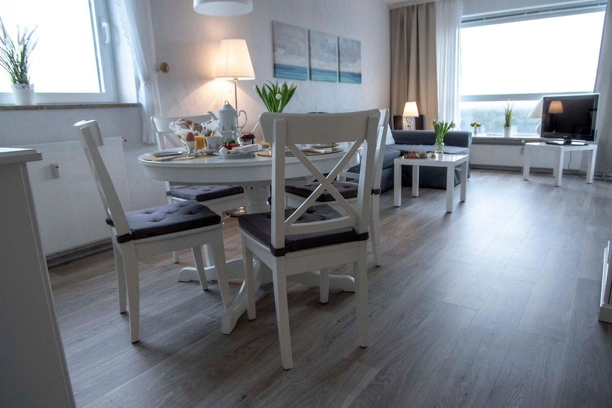 Die "Frische Brise FeWo 10.01" bietet einen einladenden Aussenbereich mit einem überdachten Balkon, von dem aus ein atemberaubender Meerblick genossen werden kann. Hier können entspannte Stunden bei einem guten Buch oder einem Glas Wein während des Sonnenuntergangs verbracht werden. Die Wohnung befindet sich nur 300 Meter vom Strand entfernt, wo zahlreiche Aktivitäten wie Schwimmen oder Windsurfen möglich sind. Zudem stehen im Gebäude gemeinschaftlich genutzte Annehmlichkeiten wie ein Indoor-Pool, eine Sauna und Waschmaschinen zur Verfügung. Die ruhige Umgebung lädt zu ausgedehnten Spaziergängen ein und die Region Cuxhaven bietet vielfältige Erholungs- und Freizeitmöglichkeiten. Ideal für Familien, Paare und Naturliebhaber, die einen erholsamen Aufenthalt an der Nordsee suchen. Die Nutzung des Schwimmbades kann saisonabhängig sein.