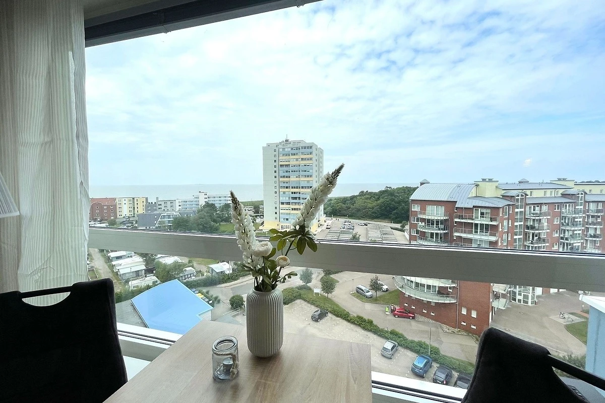 Die Unterkunft im Haus "Frische Brise" befindet sich im 9. Stock und bietet eine beeindruckende Aussicht auf das Meer. Die Lage ist ideal, um die Strandpromenade in nur wenigen Gehminuten zu erreichen. Hier finden sich zahlreiche Restaurants, die eine Vielzahl kulinarischer Köstlichkeiten bieten.