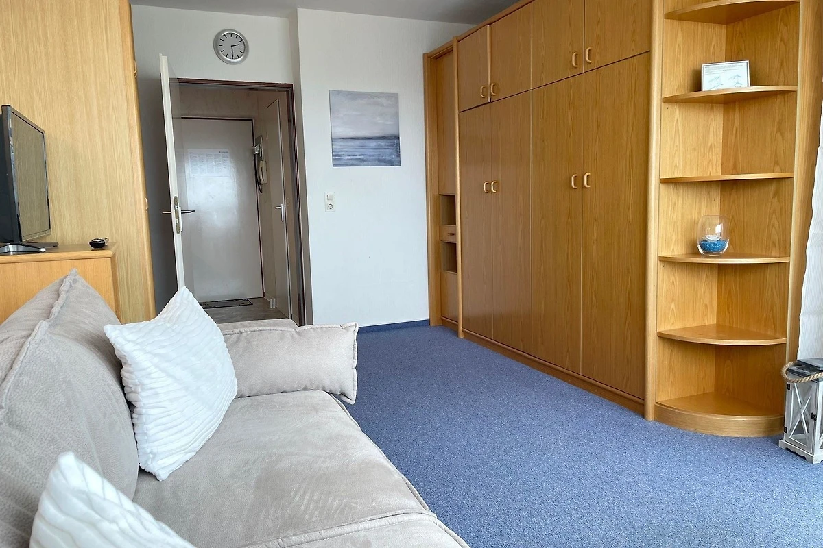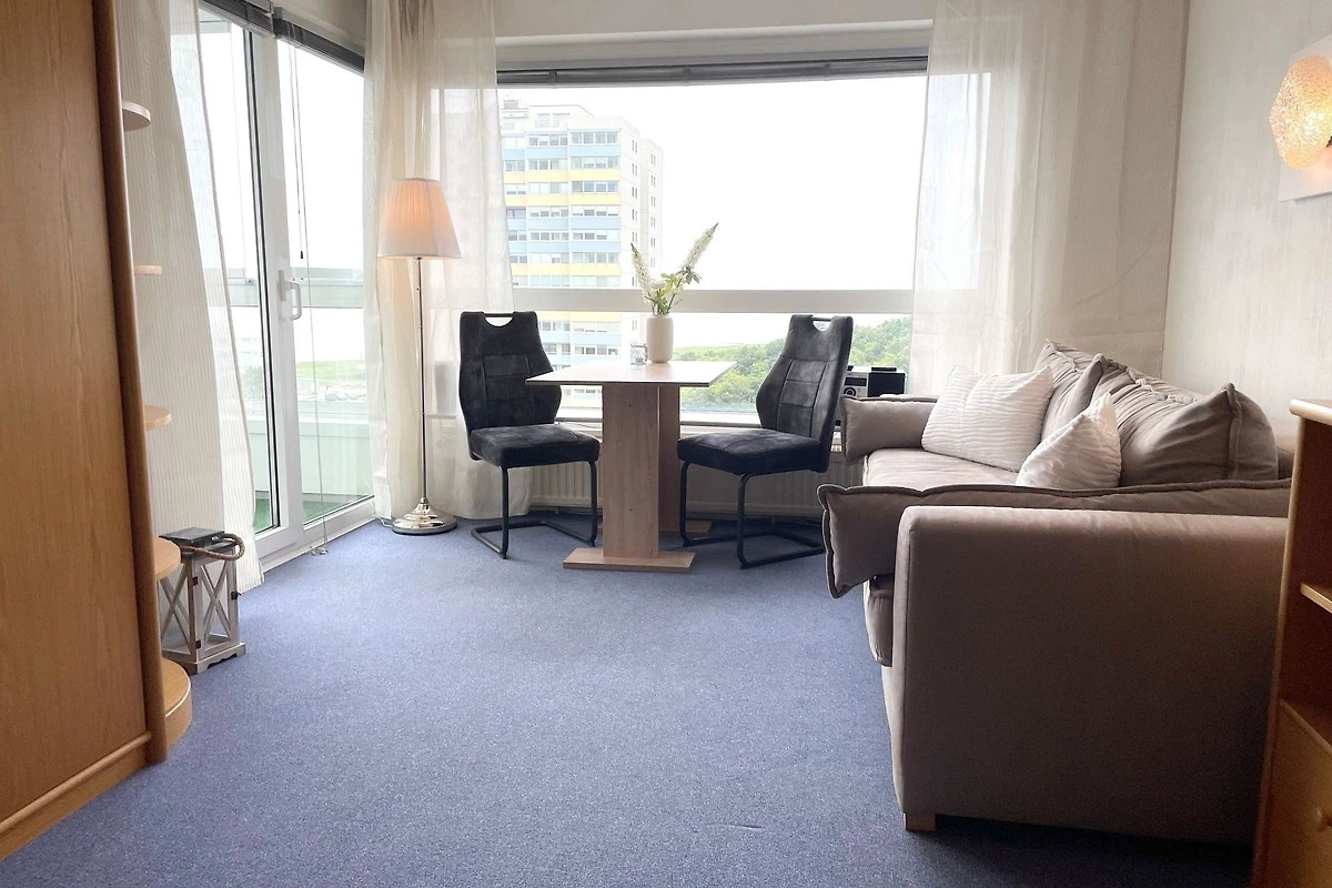 Das 1-Raum-Studio-Apartment im 9. Stock des Hauses "Frische Brise" bietet auf 25 qm Platz für bis zu 2 Personen. Die Nord-Osten ausgerichtete Ferienwohnung überzeugt durch ihren fantastischen Seesicht und eine praktische Einrichtung, die zu einem erholsamen Aufenthalt einlädt. Zu den Annehmlichkeiten des Hauses gehören ein gemeinschaftlich nutzbares Schwimmbad, dessen Öffnungszeiten saisonabhängig sind, sowie eine Sauna und ein Tennisplatz. Die Ferienwohnung liegt nur wenige Gehminuten von der Strandpromenade entfernt, die eine Vielzahl von Restaurants bereithält. Gäste sind gebeten, die Kurtaxe von €1,20 bis €2,90 pro Person und Tag je nach Kurzone und Saison zu beachten. Das Apartment bietet somit eine ideale Basis für einen entspannenden Urlaub am Wattenmeer.