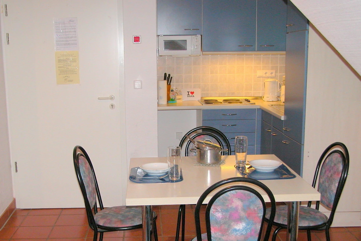 2 rooms about 40 sqm for 1-4 persons in the attic. Livingroom with functional couch, sofa, TV/radio, dining table, kitchenette, bedroom. shower toilet