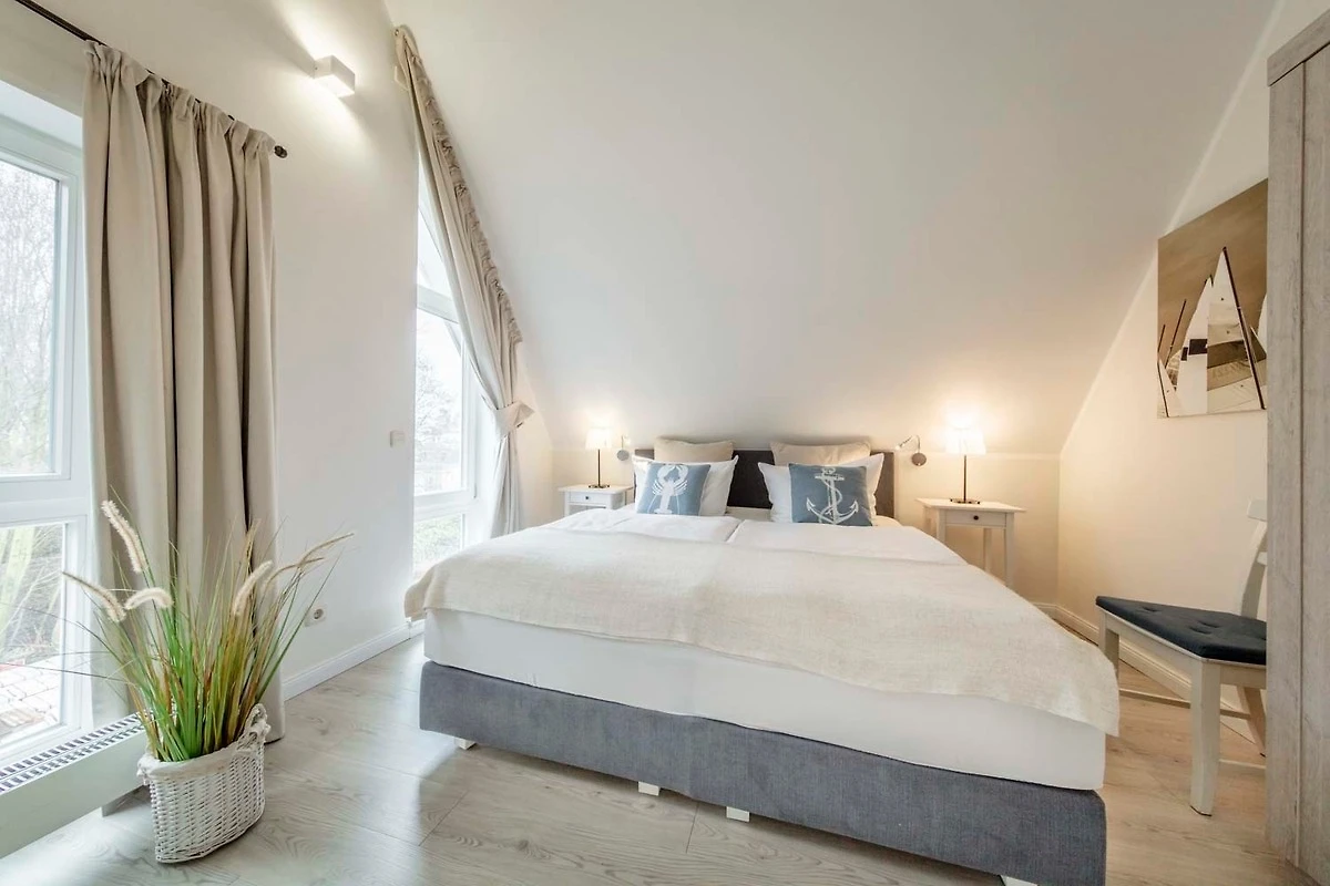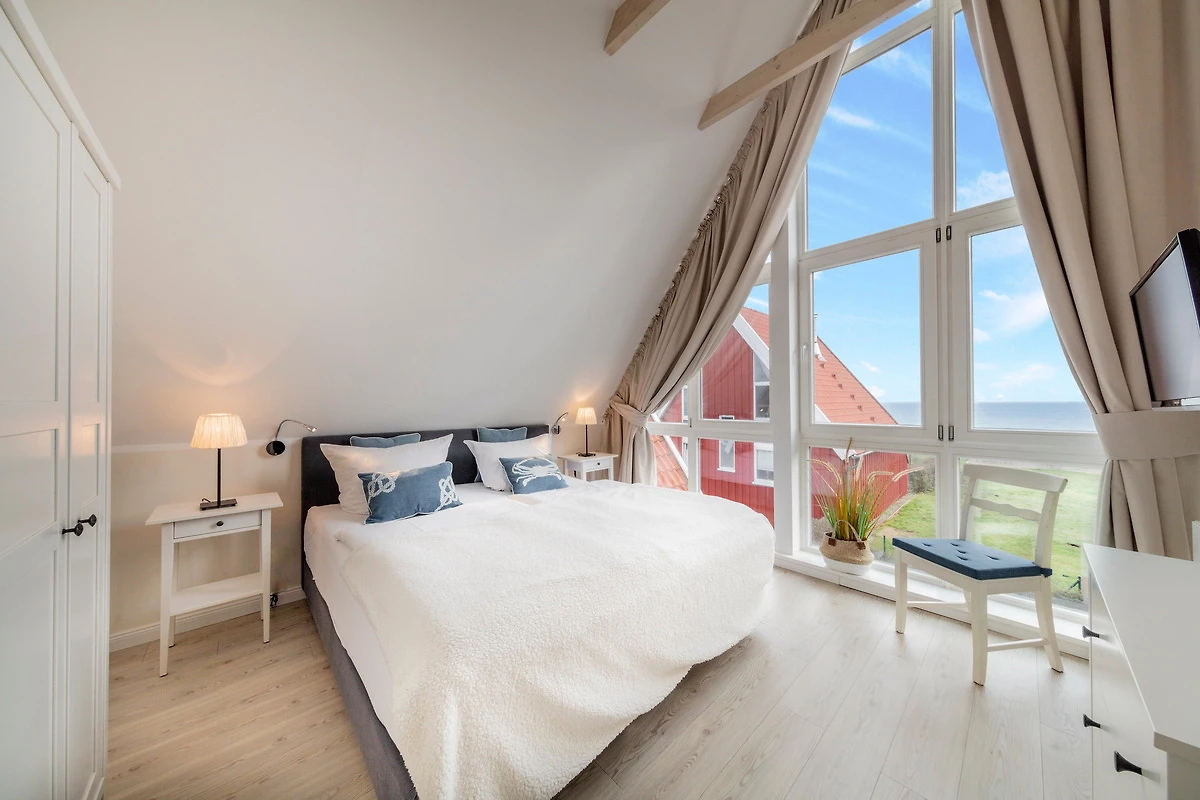 Im Beach 3 gibt es zwei Schlafzimmer mit Doppelbetten im Dachgeschoss.