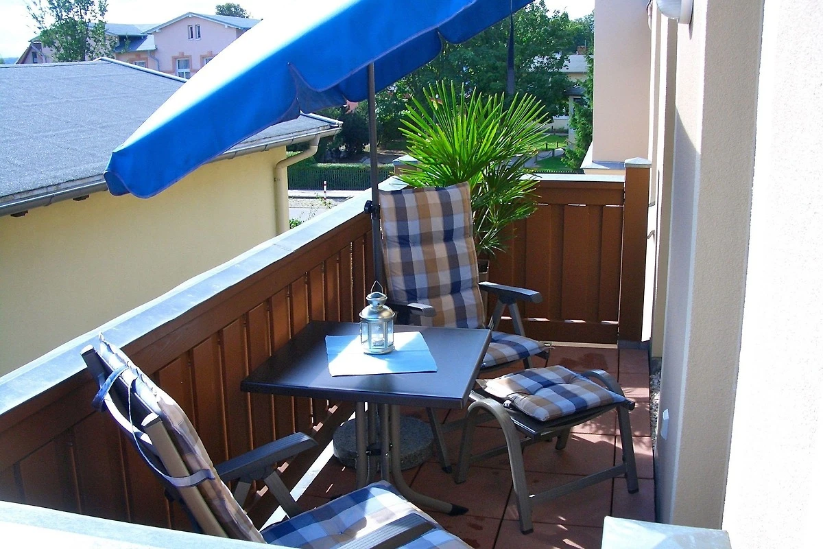 Die Wohnung besitzt einen ruhig gelegenen Süd/Ost-Balkon, auf dem Sie Ihr Frühstück in der Morgensonne geniessen können. Der Balkon ist mit modernen und bequemen Gartenmöbeln sowie einem Sonnenschirm ausgestattet. Somit steht einem gemütlichen Verweilen mit der ganzen Familie im Aussenbereich des Apartments nichts mehr im Wege.