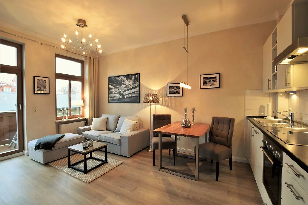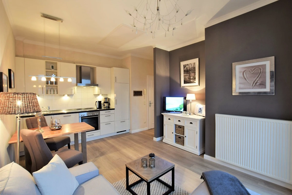 Der Fussboden ist mit einem hochwertigen Design-Bodenbelag ausgelegt. Durch die hohen Fensterfronten wirken die Räume hell und freundlich. Eine geschmackvolle Ausstattung und liebevolle Gestaltung der Wohnung sorgen für Gemütlichkeit und einen erholsamen Urlaub. Sie werden sich sofort wohlfühlen und unbeschwerte Urlaubstage verbringen!