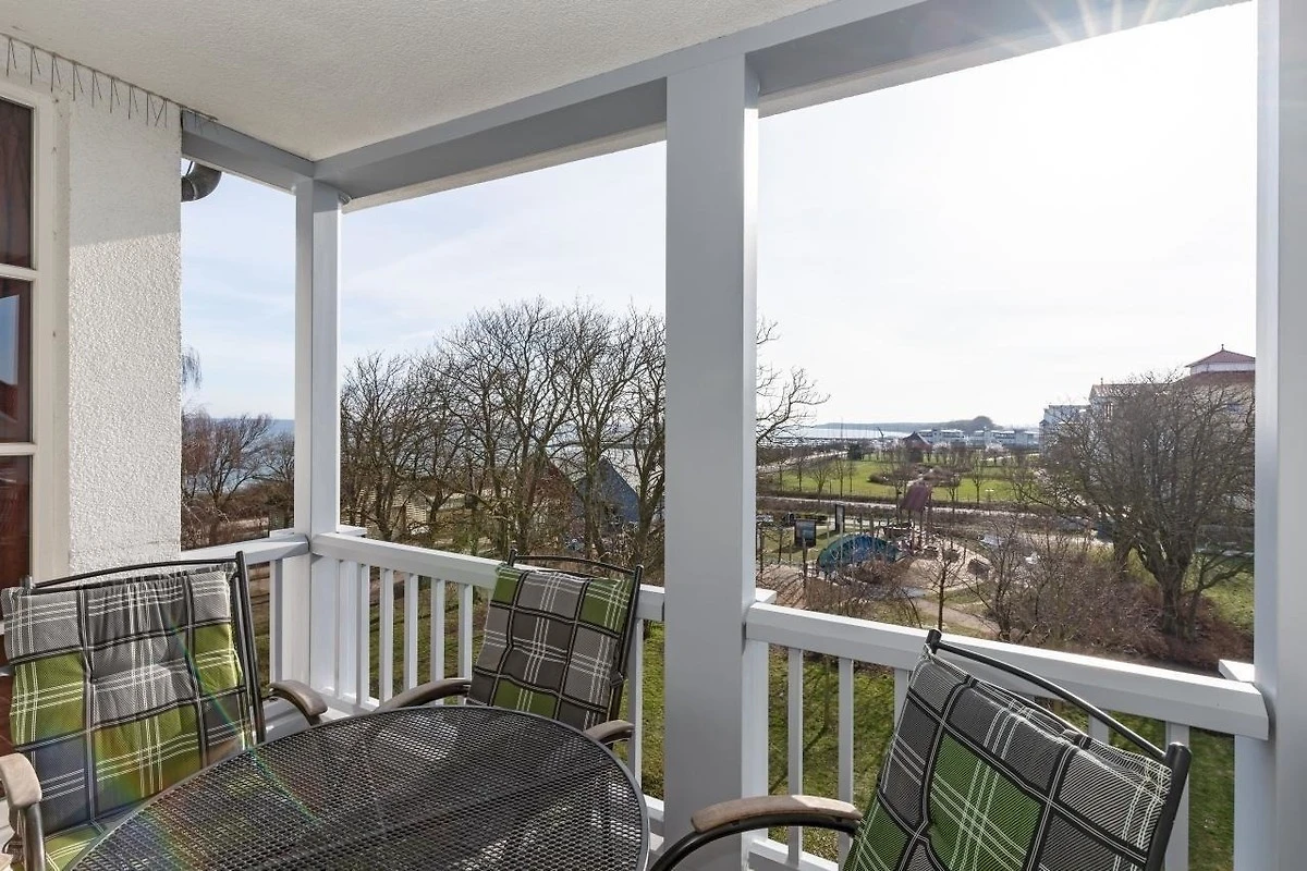 Vom modern eingerichteten Balkon aus geniessen Sie einen seitlichen Blick auf das Meer in Richtung Osten. Eine kleine Wohlfühloase erwartet Sie hier, auf der Sie den Sonnenaufgang geniessen und in Ruhe mit Blick auf den Hafen frühstücken können. In geselliger Runde am Abend einen ereignisreichen Tag bei einem leckeren Getränk ausklingen lassen....Urlaubs-Feeling pur!