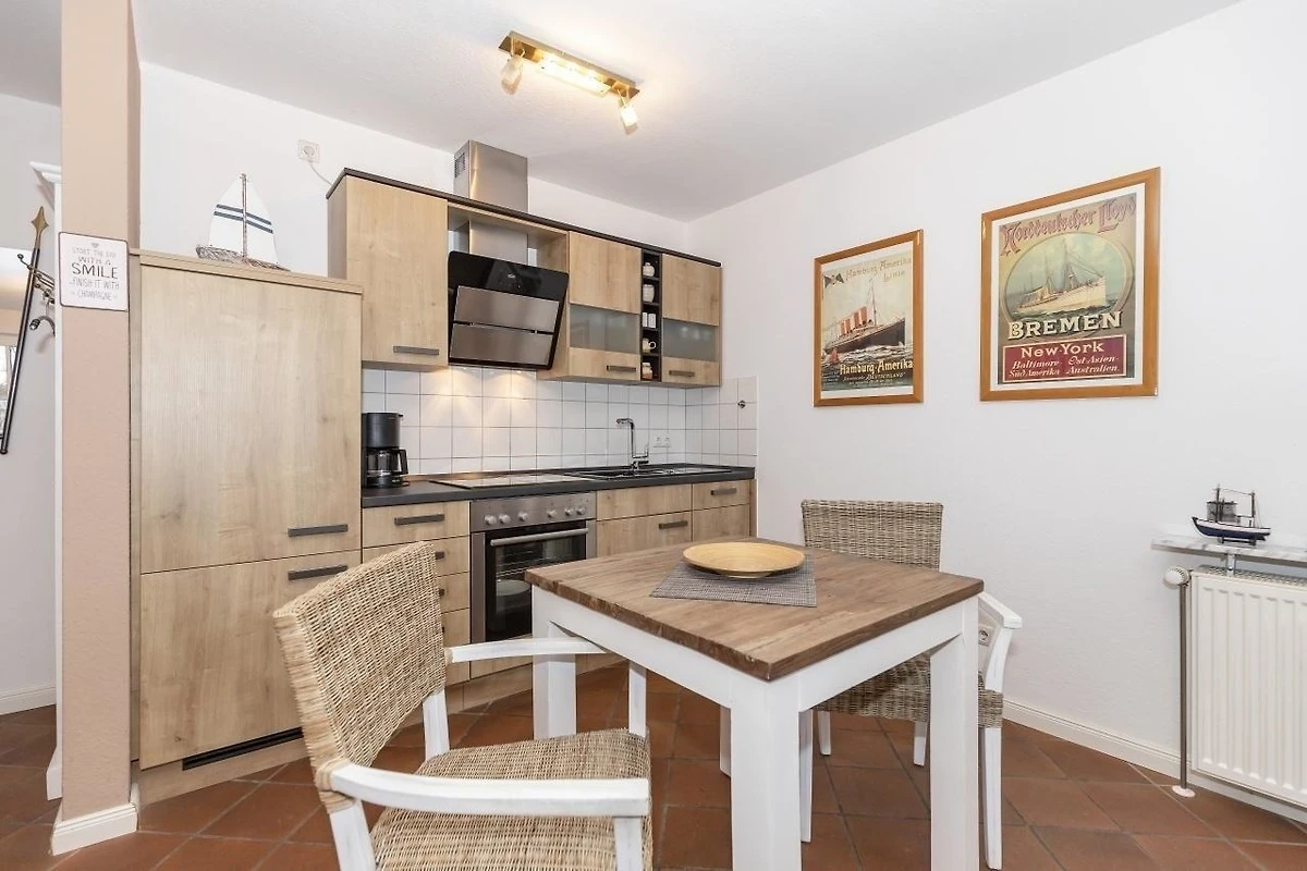Die Küche ist für die Zubereitung Ihrer Mahlzeiten bestens ausgestattet. Hier finden Sie einen Herd mit Backofen, einen Geschirrspüler, Kühlschrank, extra Gefrierfach, Toaster, Kaffeemaschine und alle Utensilien, die in einer guten Küche nicht fehlen dürfen.