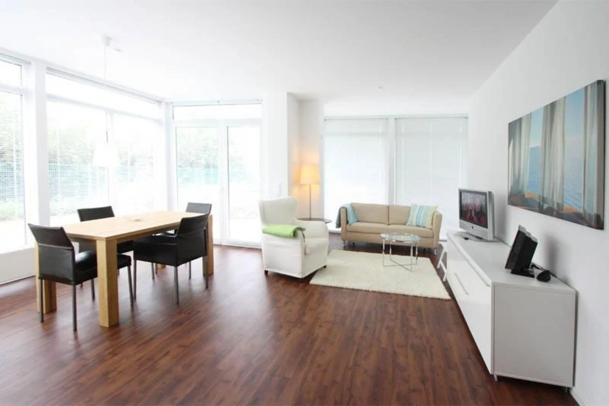 Die Anlage ist voll elektronisch gesichert. Durch ein kleines Gartentor haben Sie den direkten Zugang zum Hafen mit seinen exklusiven Geschäften und Boutiquen, in denen man ausgedehnt stöbern und shoppen kann. Natürlich finden Sie hier auch viele Restaurants, eine kleine gemütliche Weinstube, eine Cocktailbar mit grosser Aussenterrasse und viele Eiscafés, in denen man es sich im Sommer besonders gut gehen lassen kann. Ein Bummel über die Hafenpromenade mit direktem Blick auf die Ostsee, das ist die richtige Abwechslung vom Alltagsstress.