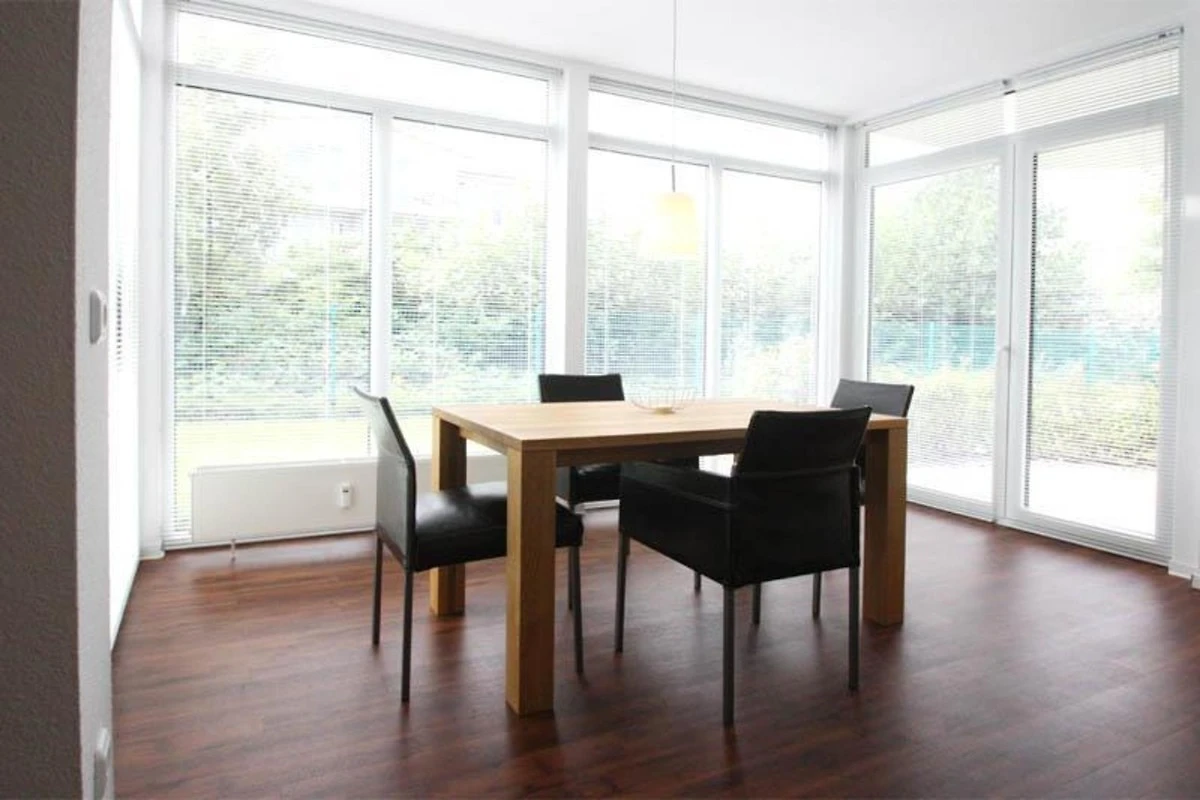 Die grossen Fenster lassen viel warmes Licht in die hochwertig ausgestattete Wohnung und tauchen sie in ein warmes und freundliches Ambiente. Sie ist komplett mit Fliesen/Laminat ausgelegt und dadurch auch für Allergiker geeignet.