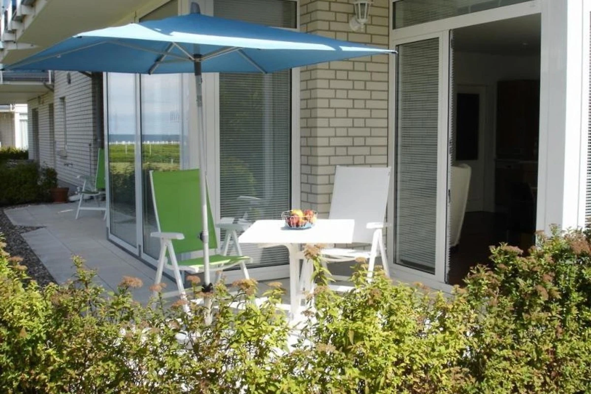 Ein Blickfang im Aussenbereich: die sonnige Terrasse, die nach Süd-/Westen ausgerichtet und von einer Hecke eingefasst ist. Moderne Terrassenmöbel laden zum Verweilen und Sonnenbaden ein. Von hier aus haben Sie einen fantastischen Blick auf die Ostsee und können das interessante Schauspiel der ein- und auslaufenden Boote und Yachten beobachten.