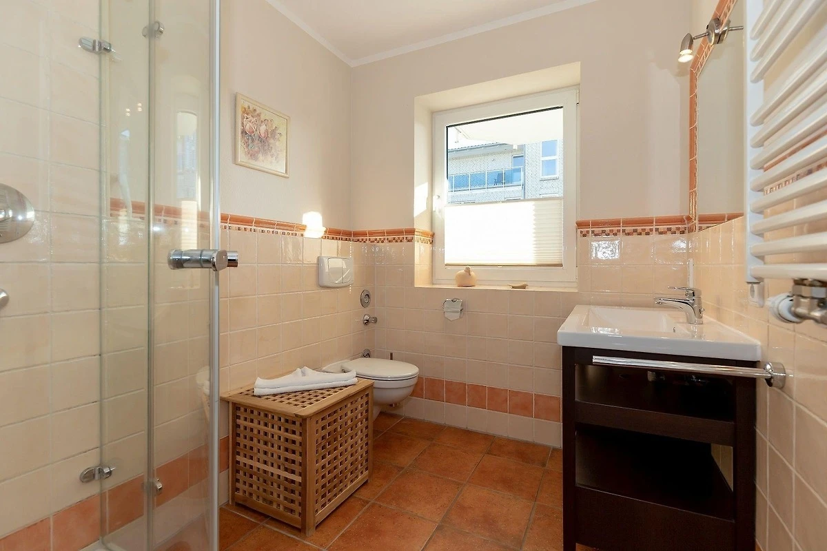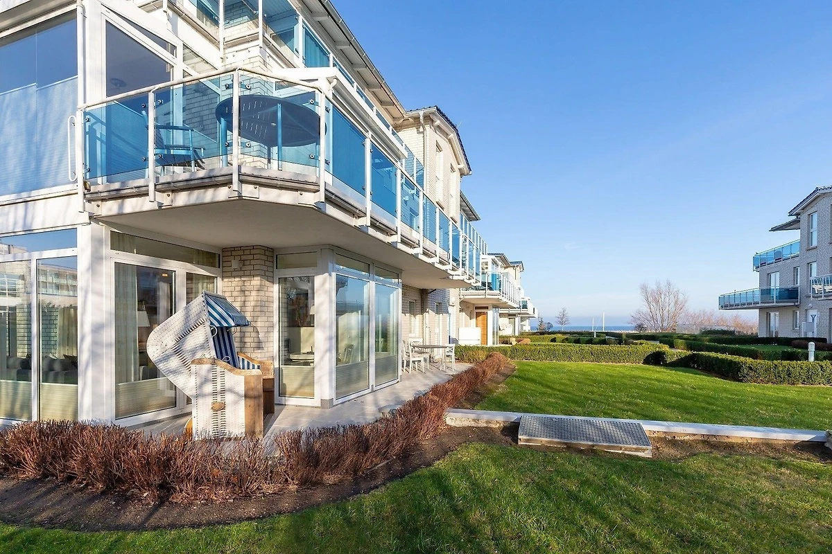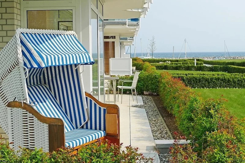 Als Blickfang im Aussenbereich präsentiert sich die nach Süd/Osten ausgerichtete Terrasse. Moderne Terrassenmöbel und ein hübscher Strandkorb für das maritime Ambiente laden zum Verweilen und Sonnenbaden ein. Auf dieser kleinen Wohlfühloase können Sie in geselliger Runde den Blick auf die Ostsee geniessen und gemeinsam einen ereignisreichen Tag bei einem leckeren Getränk gemütlich ausklingen lassen. Ostsee-Feeling pur!