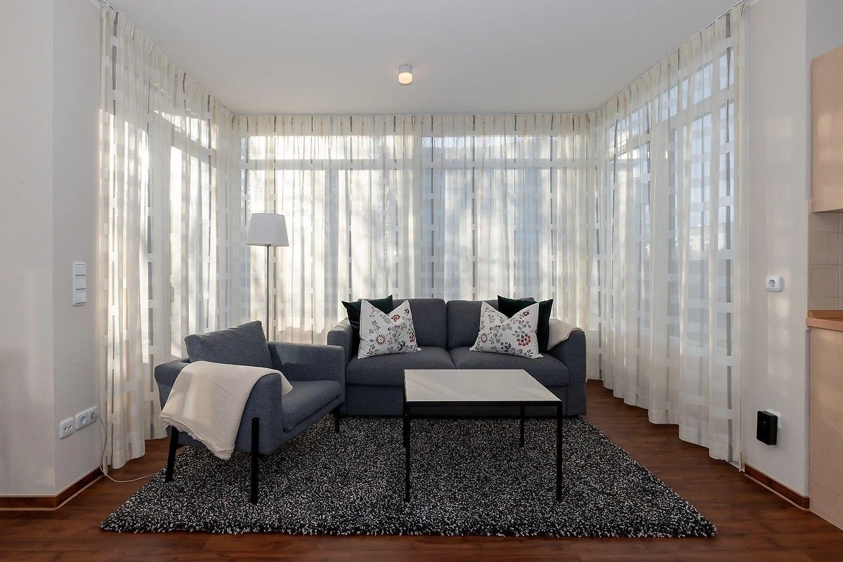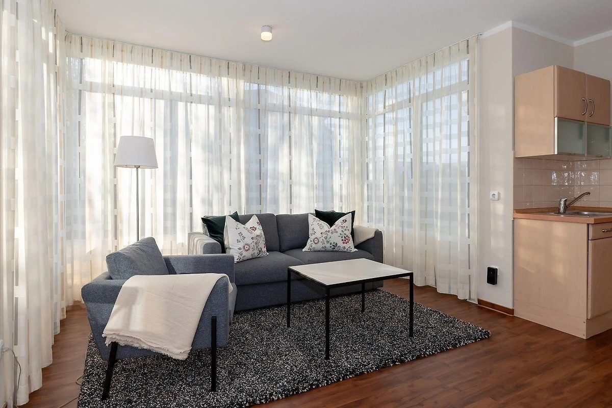 Die grossen Fenster lassen viel Licht in die hochwertig ausgestattete Wohnung und tauchen sie in ein warmes und freundliches Ambiente. Sie ist komplett mit Fliesen/Laminat ausgelegt und dadurch auch für Allergiker geeignet.