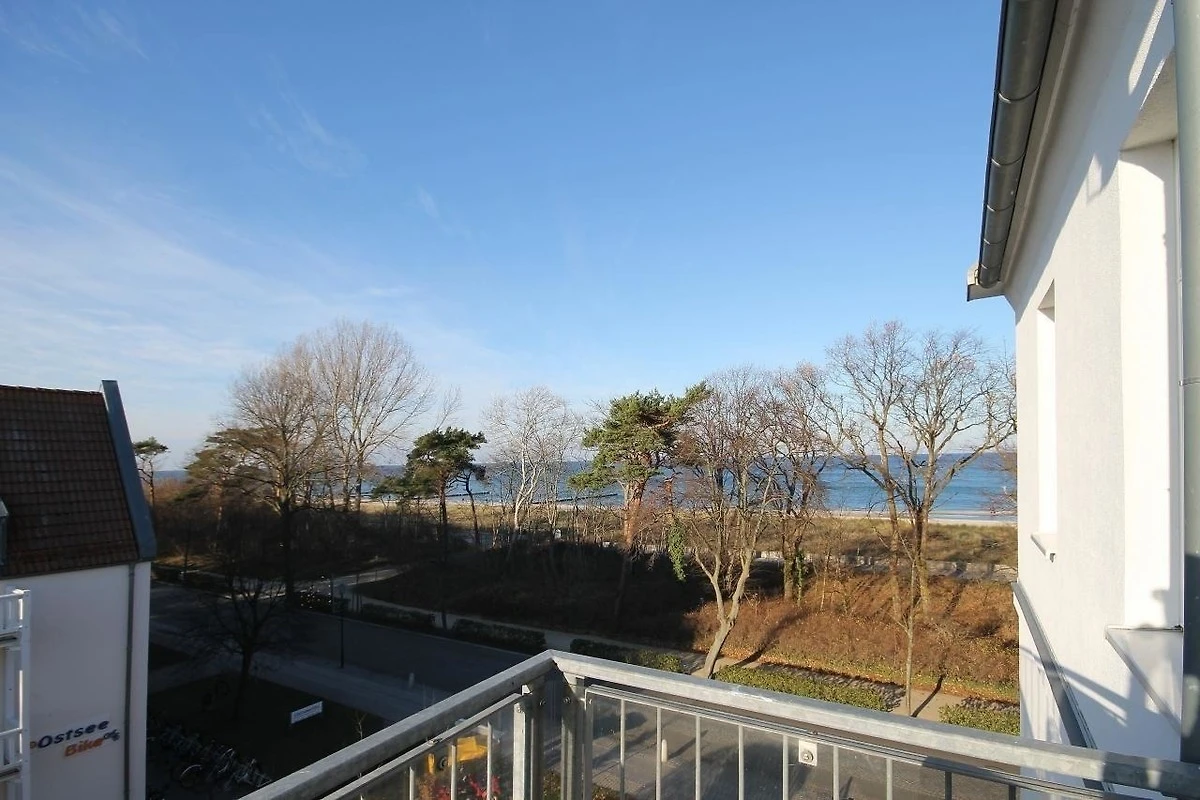 Vom Wohnzimmer aus gelangen Sie auf den einladenden Balkon mit Meerblick, der zur Westseite ausgerichtet ist. Ab mittags können Sie die Sonne geniessen und entspannen.