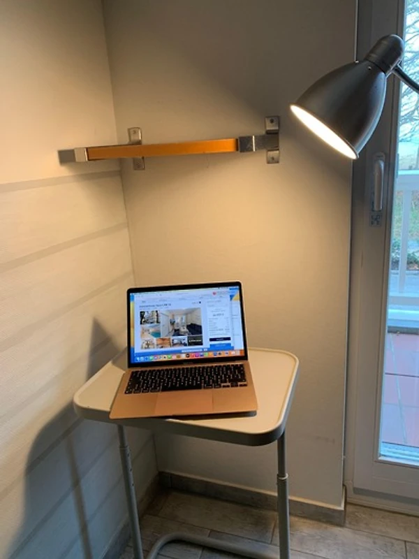 Im zweiten Schlafzimmer ist ein kleines Home Office eingerichtet, wo man bei Bedarf in Ruhe remote arbeiten kann. Dort steht eine ausziehbare Querschläfercoach für zwei Personen sowie ein Kleiderschrank für die Urlaubsgarderobe zur Verfügung.