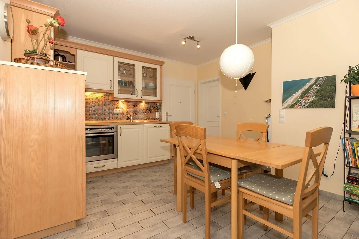 Der 8 m² grosse Balkon ist zur Meerseite ausgerichtet und lädt zum Relaxen mit Blick auf die Ostsee ein. 4 Stühle und 1 Tisch stehen Ihnen hier für ein paar unbeschwerte Stunden zur Verfügung.