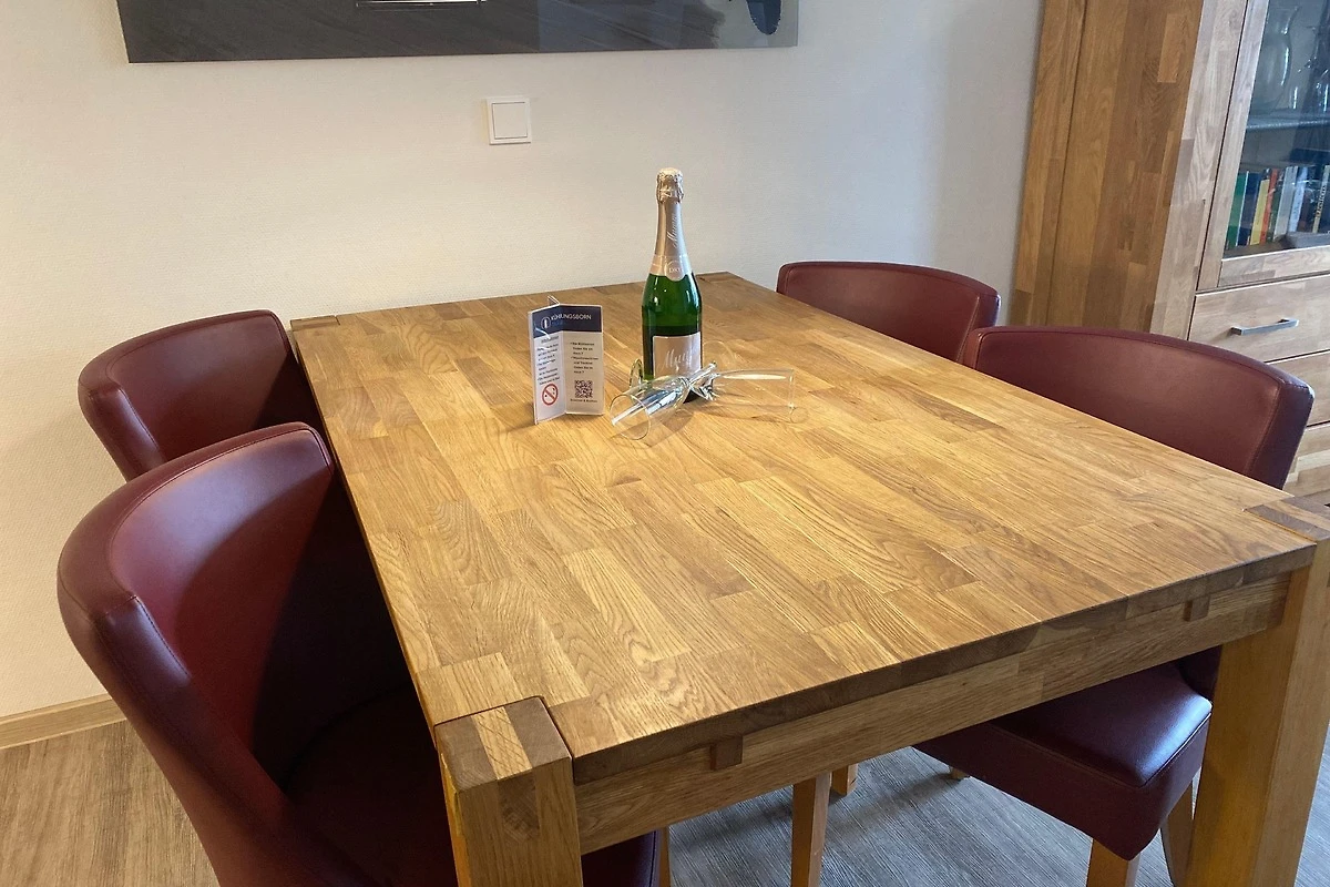 Der grosse Esstisch bietet genügend Platz für 4 Personen.