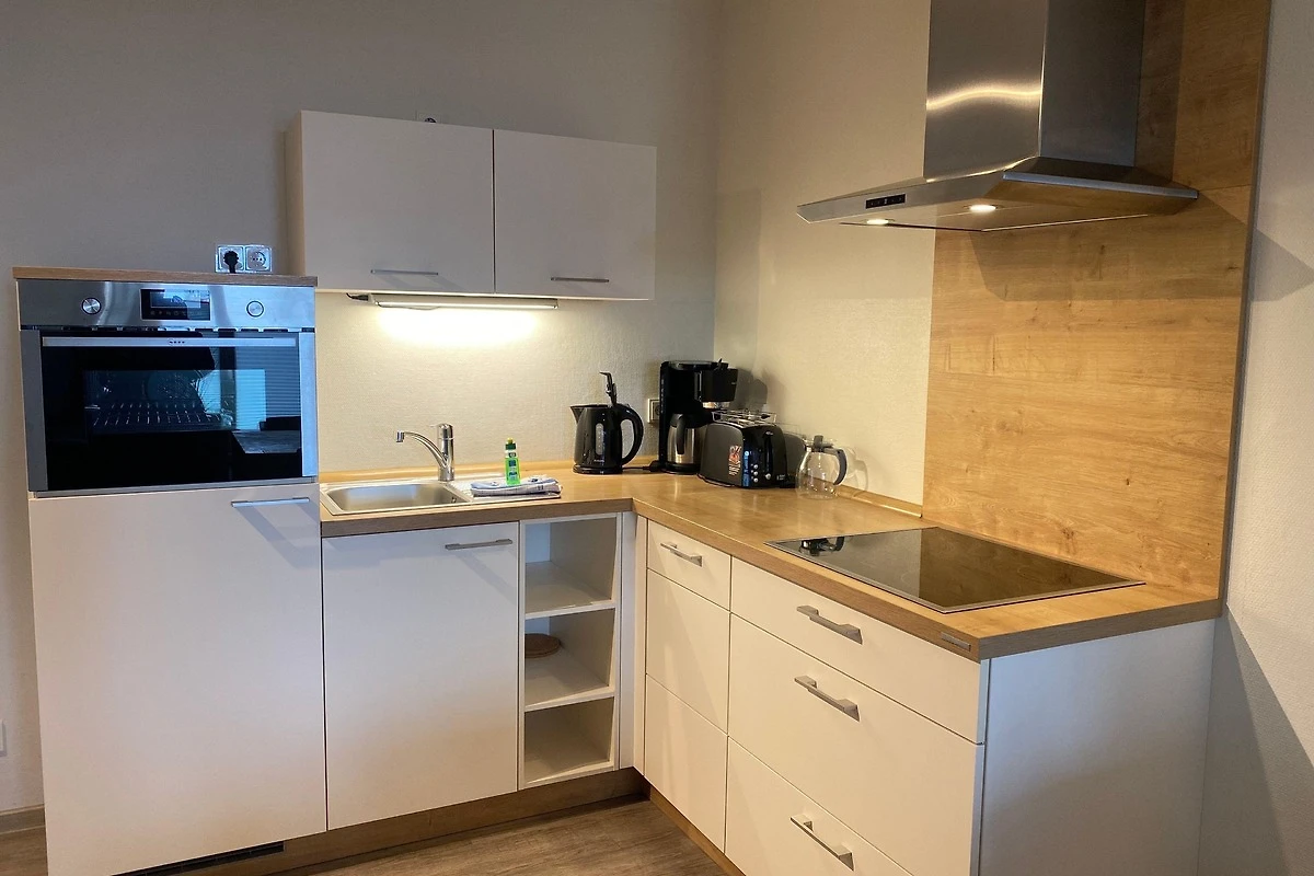 An den Wohnbereich grenzt die kleine Küchenzeile, welche voll ausgestattet ist. Hier müssen Sie auf nichts verzichten.