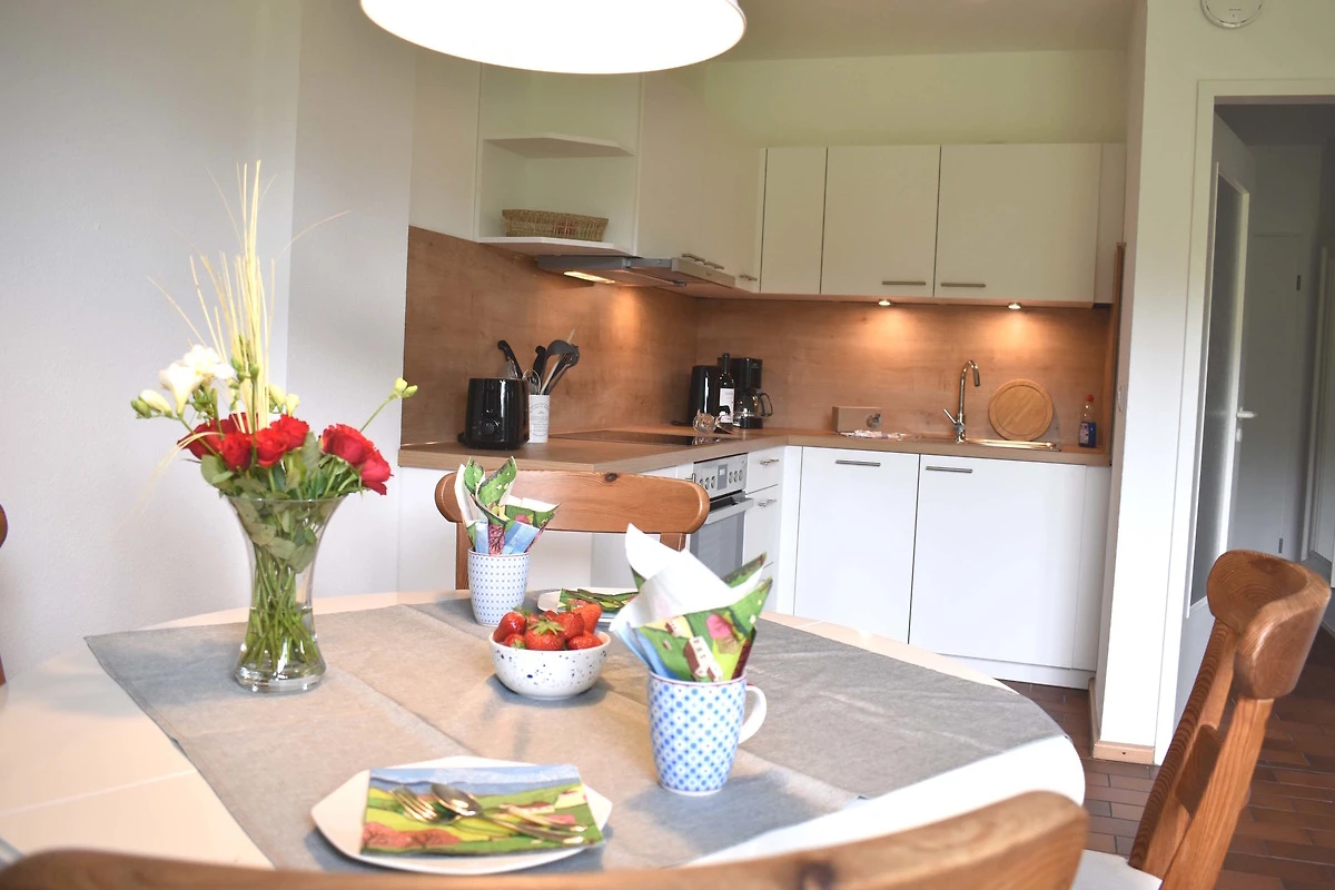 WLAN über ein gesichertes Netzwerk können Sie in allen Wohnungen empfangen. Zu unserem Service gehören bezogene Betten und Handtücher.