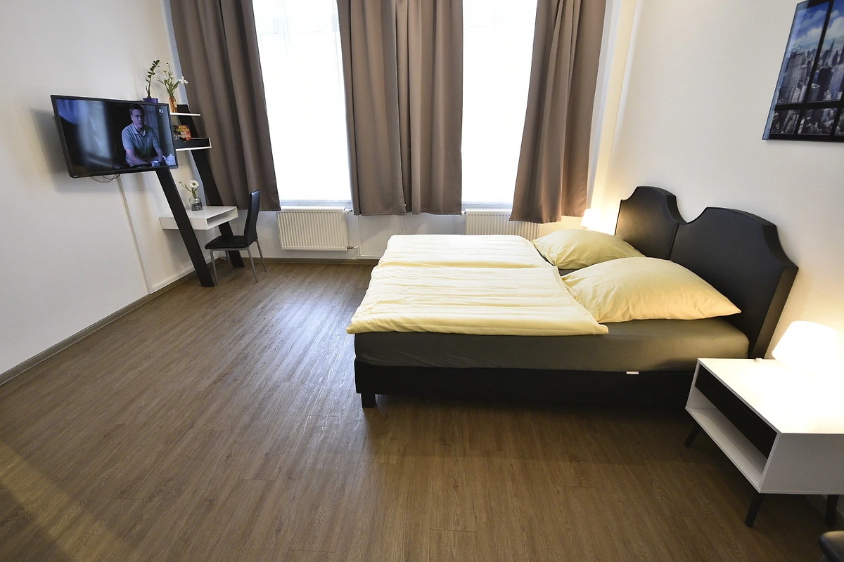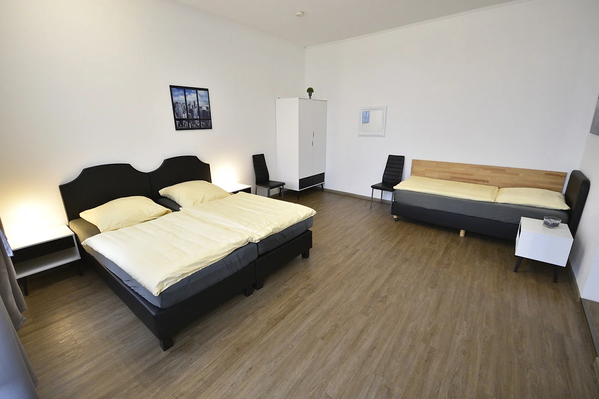 Im Schlafzimmer finden Sie: Bettwäsche, Kleiderschrank, Schreibtisch, TV Sat/Kabel und drei hochwertige Boxspringbetten.