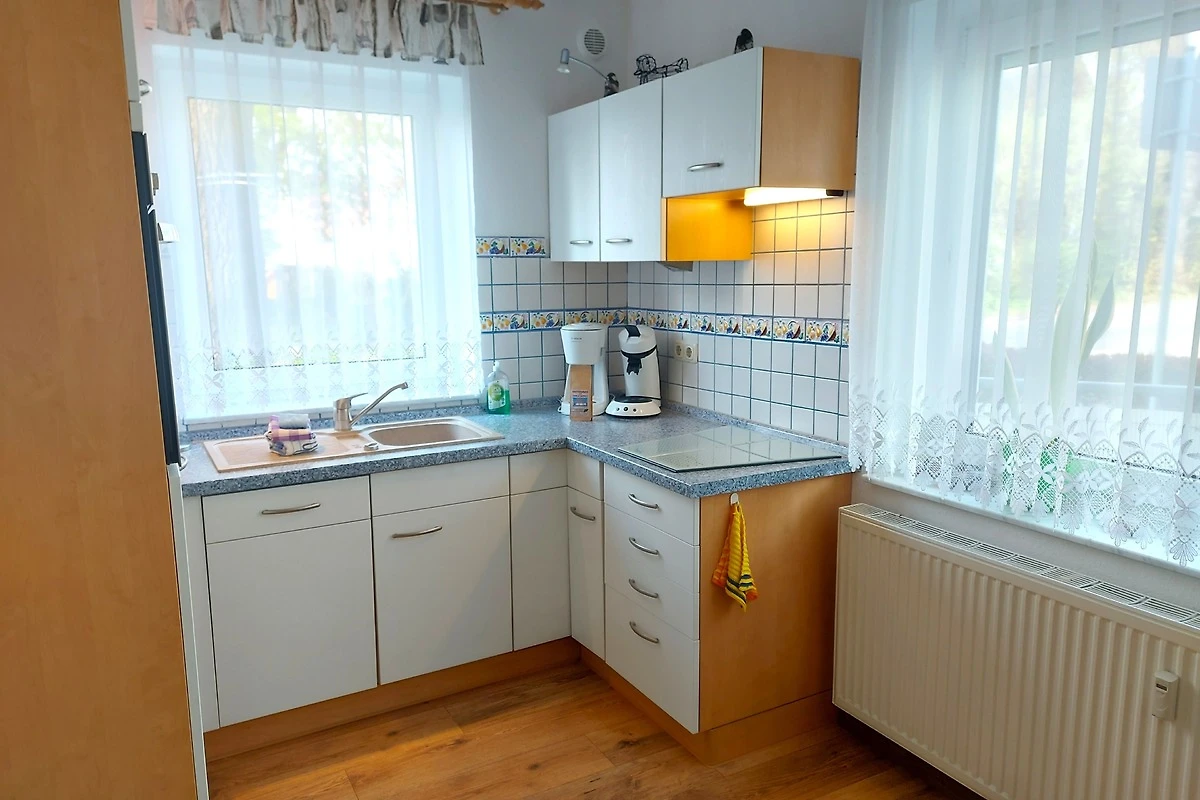 Leckeren Fisch den sie gerade am Hafen direkt vom Fischer geholt haben bereiten sie in der kompletten Einbauküche mit allem Komfort, wie Geschirrspüler, Mikrowelle, Ceranfeld, Kühlschrank mit Gefrierfach, Kaffemaschine, Wasserkocher und Toaster mit Freude zu.Angrenzend ist der Essbereich grossem Tisch und 4 bequemen Stühlen.