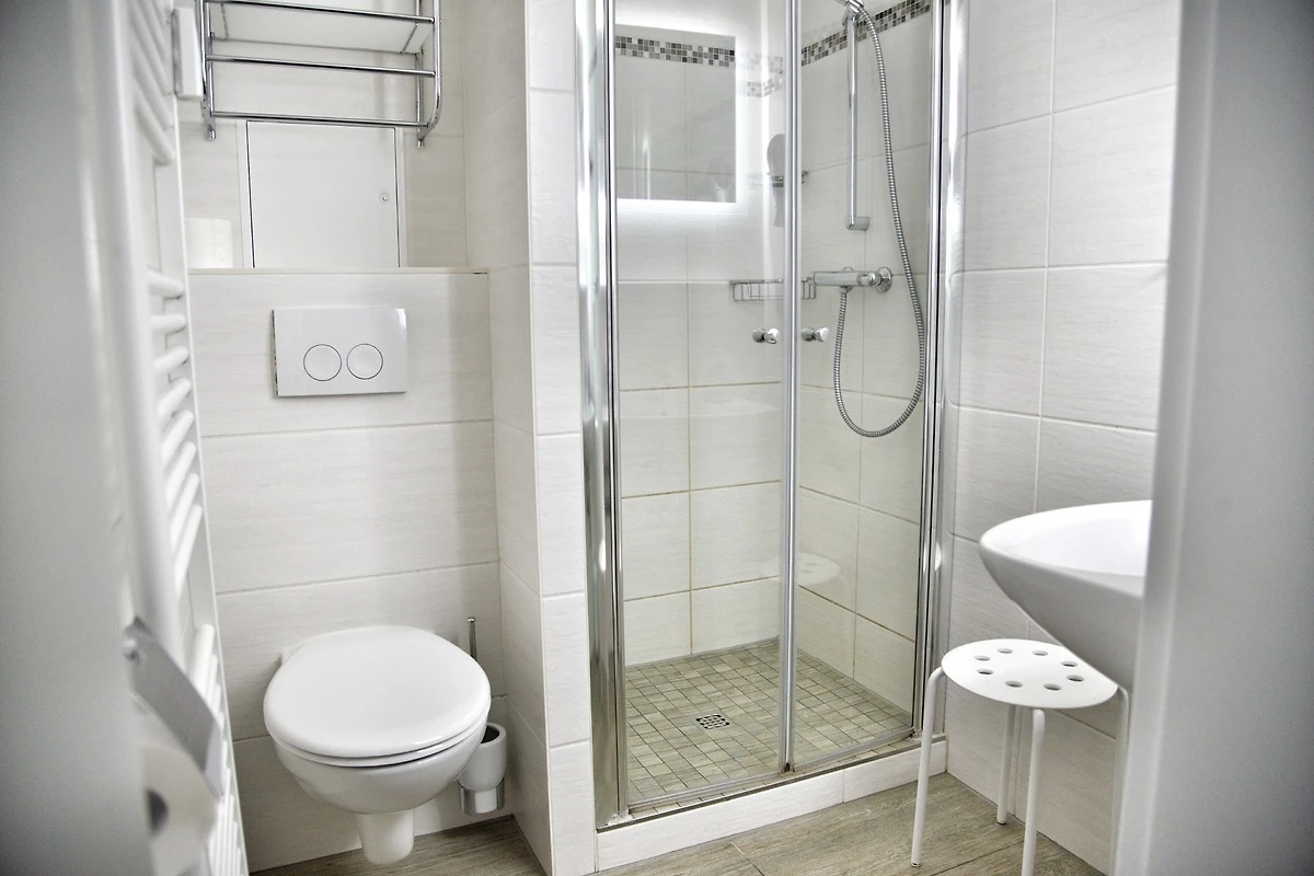 Das lichtdurchflutete Wohnzimmer verfügt über einen Esstisch mit vier Stühlen, ein ausziehbares Schlafsofa mit einem Schlafplatz für zwei Personen und einen Sessel. Für die Übernachtungsgäste des Wohnzimmers steht Ihnen ein separater Kleiderschrank zur Verfügung. Multimedial können Sie auf einen grossen Flachbildfernseher zurückgreifen. Ihre Ferienwohnung hat einen Kabelanschluss. Auch einige Gesellschaftsspiele warten hier schon auf Sie. In Ihrem Schlafzimmer befindet sich ein Doppelbett mit höhenverstellbaren Lattenrosten. Nachtische, Leselampen und Garderoben möchten hier von Ihnen genutzt werden. Der grosse Schrank wird Ihnen gute Dienste leisten und genügend Stauraum für Ihr Gepäck bieten.