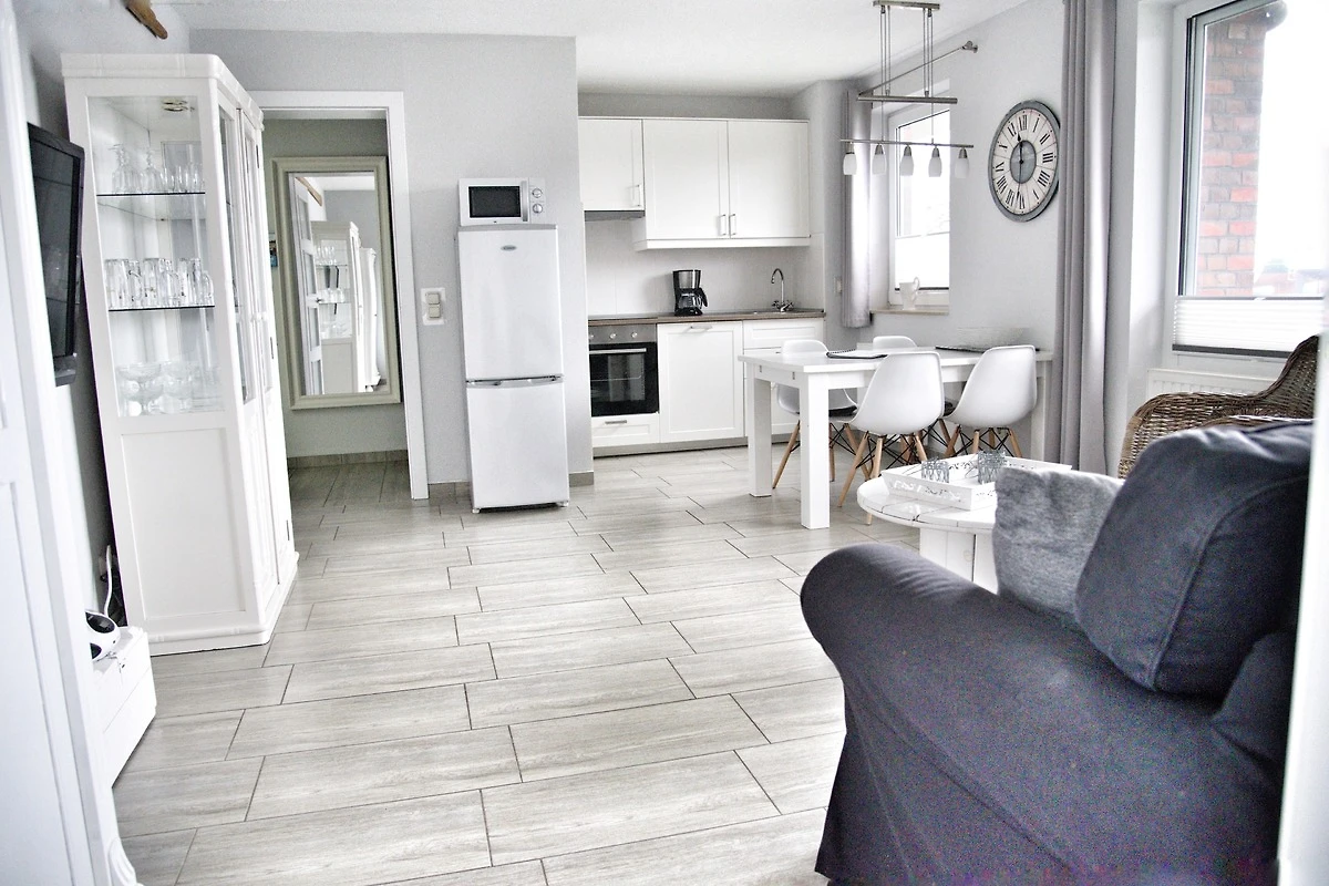 Ihre neue Wohnküche ist zum Wohnzimmer hin offen, was den Raum noch grosszügiger erscheinen lässt. Die Sterneküche ist für Sie voll ausgestattet. Bestandteile sind unter anderem ein Cerankochfeld, ein Backofen, eine Kaffeemaschine, eine Mikrowelle, viel Geschirr, ein Geschirrspüler sowie eine grosse Kühl- und Gefrierkombination. Das neu geflieste Badezimmer hält eine Dusche, viele Ablageflächen und einen Fön für Sie bereit. In Ihrem Flur finden Sie eine Garderobe, einen grossen Spiegel und Reinigungsgeräte vor. Die Ferienwohnung Bilge befindet sich im Erdgeschoss des Hauses Albatros im Eingang 2 und verspricht kurze Wege zum Strand. In unmittelbarer Nähe dieser Ferienwohnung befinden sich weitere Ferienappartements unserer Gesellschaft.