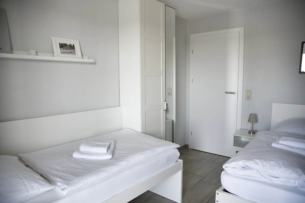 In Ihrem grossen Schlafzimmer befindet sich ein Doppelbett mit höhenverstellbaren Lattenrosten. Nachtische, Leselampen und Garderoben möchten hier von Ihnen genutzt werden. Der grosse Schrank wird Ihnen gute Dienste leisten. Im kleinen Schlafzimmer sind zwei Einzelbetten für Sie vorhanden. Die Lattenroste sind auch hier höhenverstellbar. Die beiden Kleiderschränke, die Garderoben und die Nachttische mit den dazugehörigen Leselampen werden Ihnen genügend Stauraum für Ihr Gepäck bieten.
