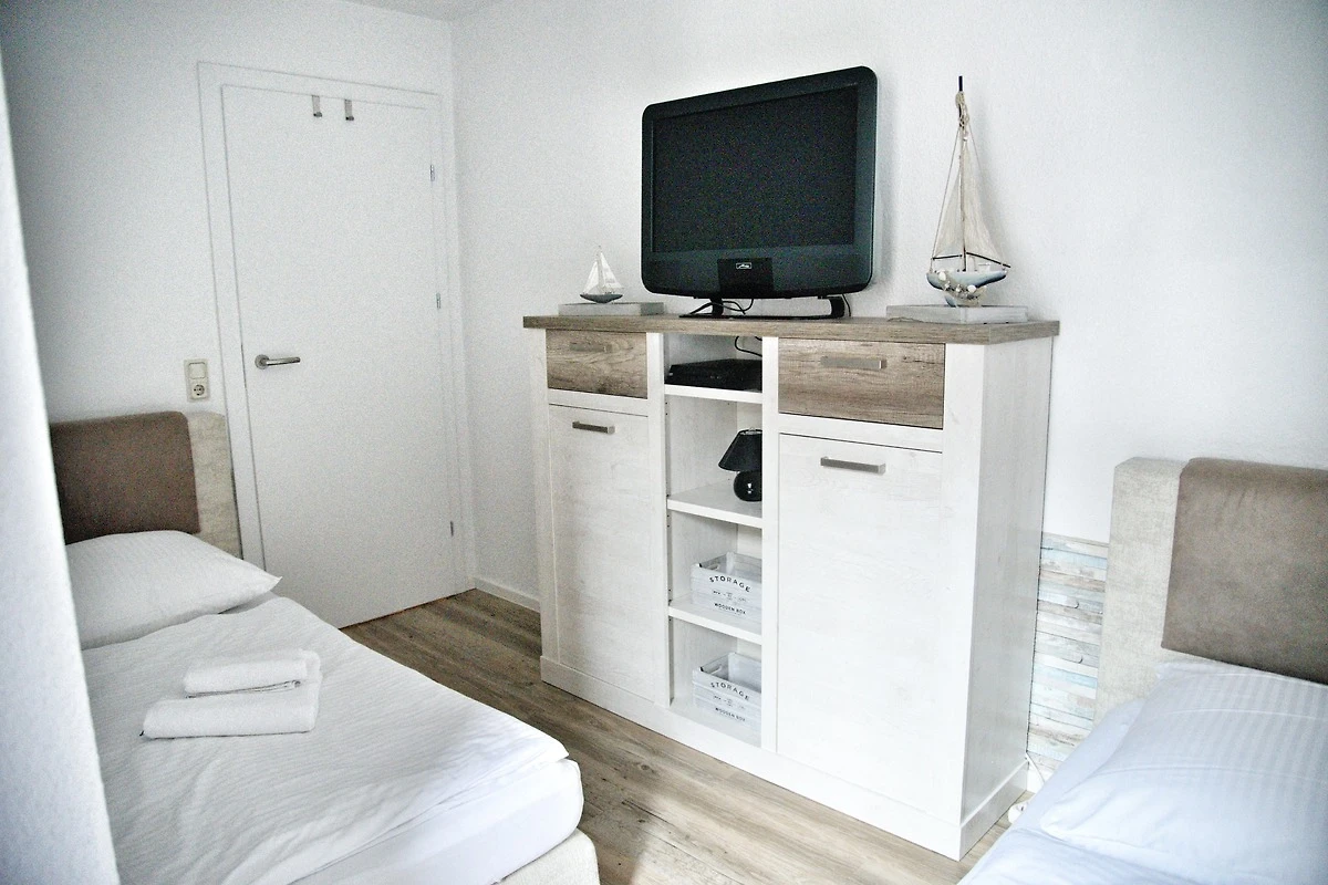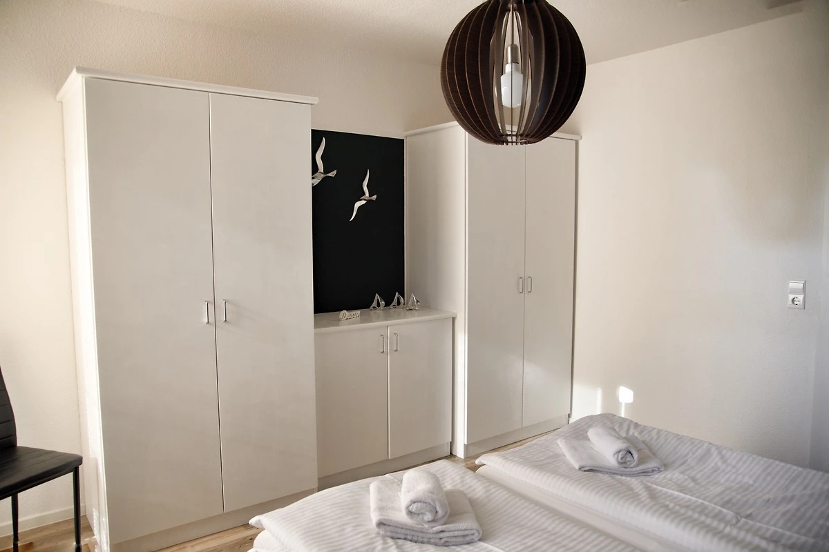In Ihrem grossen Schlafzimmer befindet sich ein Doppelbett. Nachtische, Leselampen und Garderoben möchten hier von Ihnen genutzt werden. Die grossen Kleiderschränke werden Ihnen gute Dienste leisten. Im kleineren Schlafzimmer finden Sie zwei Einzelbetten vor. Ablageflächen, ein weiterer Fernseher und eine X-Box sind hier auch vorhanden.