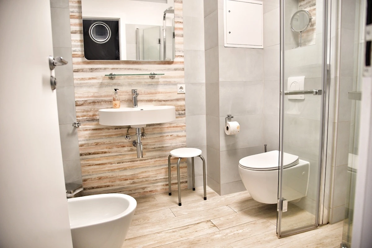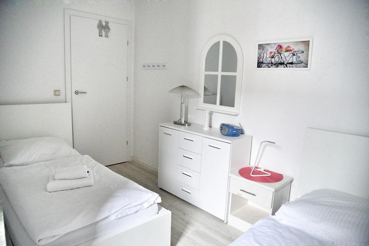 Nachtische, Leselampen und Garderoben möchten hier von Ihnen genutzt werden. Die grossen Kleiderschränke werden Ihnen gute Dienste leisten. Im kleineren Schlafzimmer finden Sie zwei Einzelbetten vor. Ablageflächen sind auch hier selbstverständlich vorhanden. Die Küche verfügt über eine komplett ausgestattete Küchenzeile, mit Herd, Backofen, Mikrowelle, viel Geschirr, einen Geschirrspüler sowie einer grossen Kühl- Gefrierkombination. Hier können Sie sich kulinarisch voll entfalten. Das neue Badezimmer hat eine Dusche, ein Bidet, einen Fön und ausreichend Ablageflächen für Ihre Kosmetika. Eine Garderobe ziert Ihren Eingangsbereich im Flur.