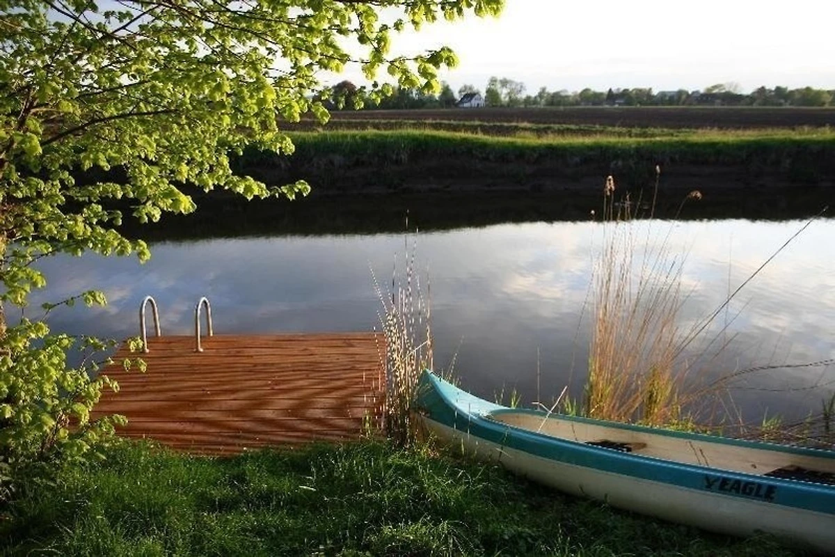 Der kleine Fluss „Ollen", (Hunte Seitenarm ca. 20m breit/1,5m tief) passiert das Grundstück über einen Abschnitt von fast 200m Länge, und ein Wasserzugang ermöglicht Ruderern den Einstieg. Die Hunte und die Weser können so direkt angesteuert werden.