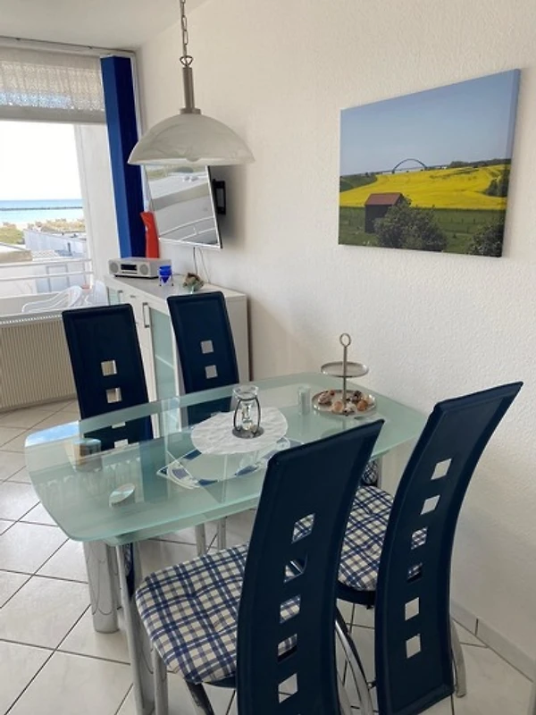 Das Appartement liegt 80m vom weissen Badestrand mit Strandkörben und der Promenade. Sie sehen "Ihren" Balkon. Hinter dem Haus befindet sich Ihr eigener kostenloser PKW- Einstellplatz, sowie der Yachthafen mit Segel- und Surfschulen.