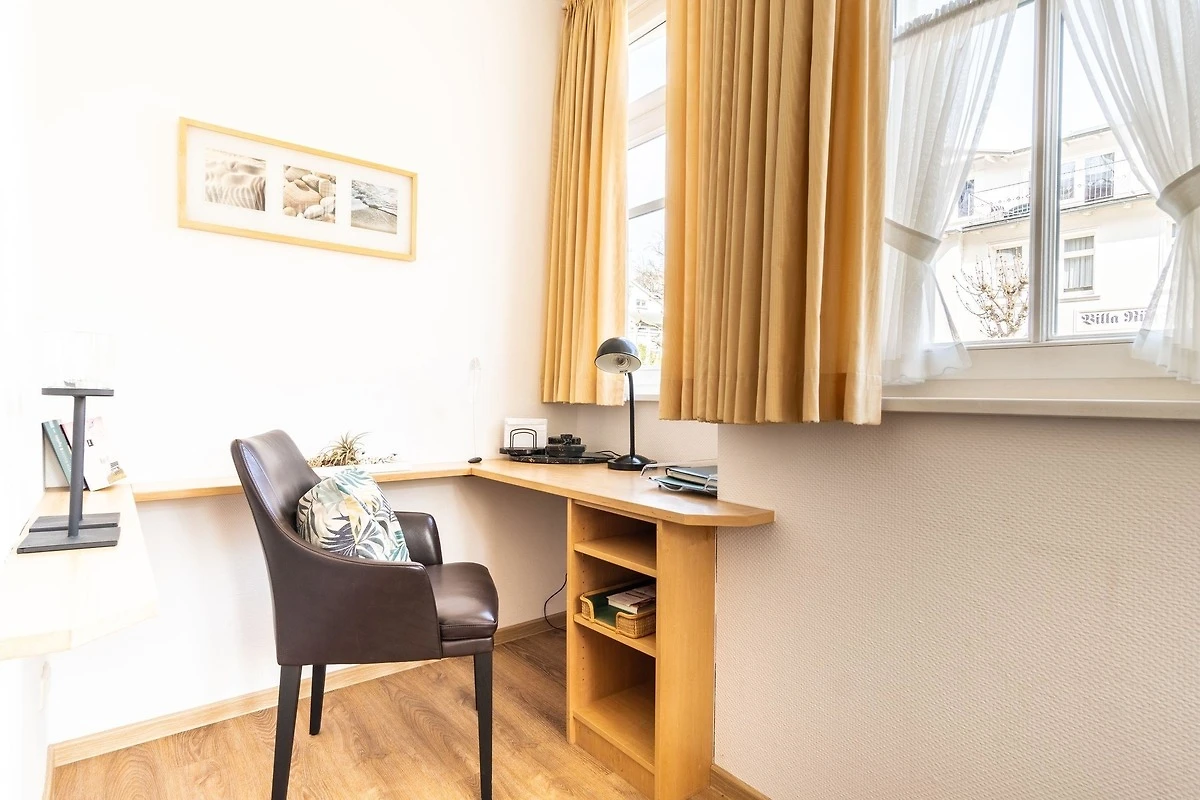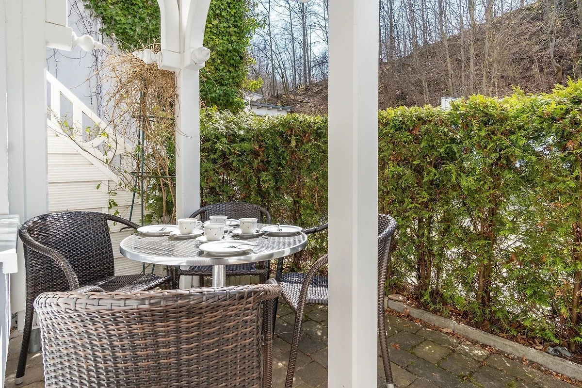 Nur wenige Hundert Meter vom traumhaften, feinsandigen Strand entfernt liegt dieses ruhig gelegene Apartment und befindet sich daher in einer der exklusivsten Gegenden von Binz. Hier können Sie nach Belieben spazieren gehen, sich im Meer abkühlen oder einfach die Seele baumeln lassen.
