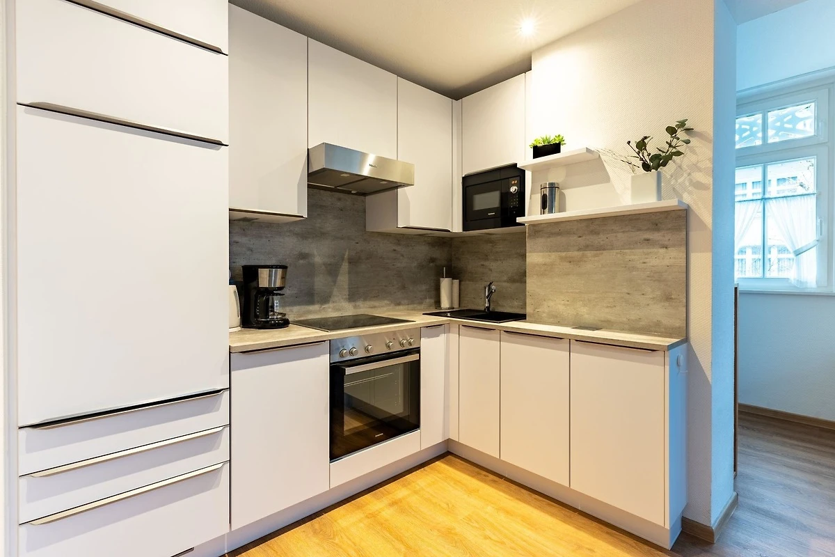 Die voll ausgestattete offene Küche lässt keine Wünsche offen und sorgt für Wohlfühl-Atmosphäre. Neben Backofen, Geschirrspüler und Gefriermöglichkeit sind natürlich auch Gläser, Besteck und Elektrogeräte vorhanden.