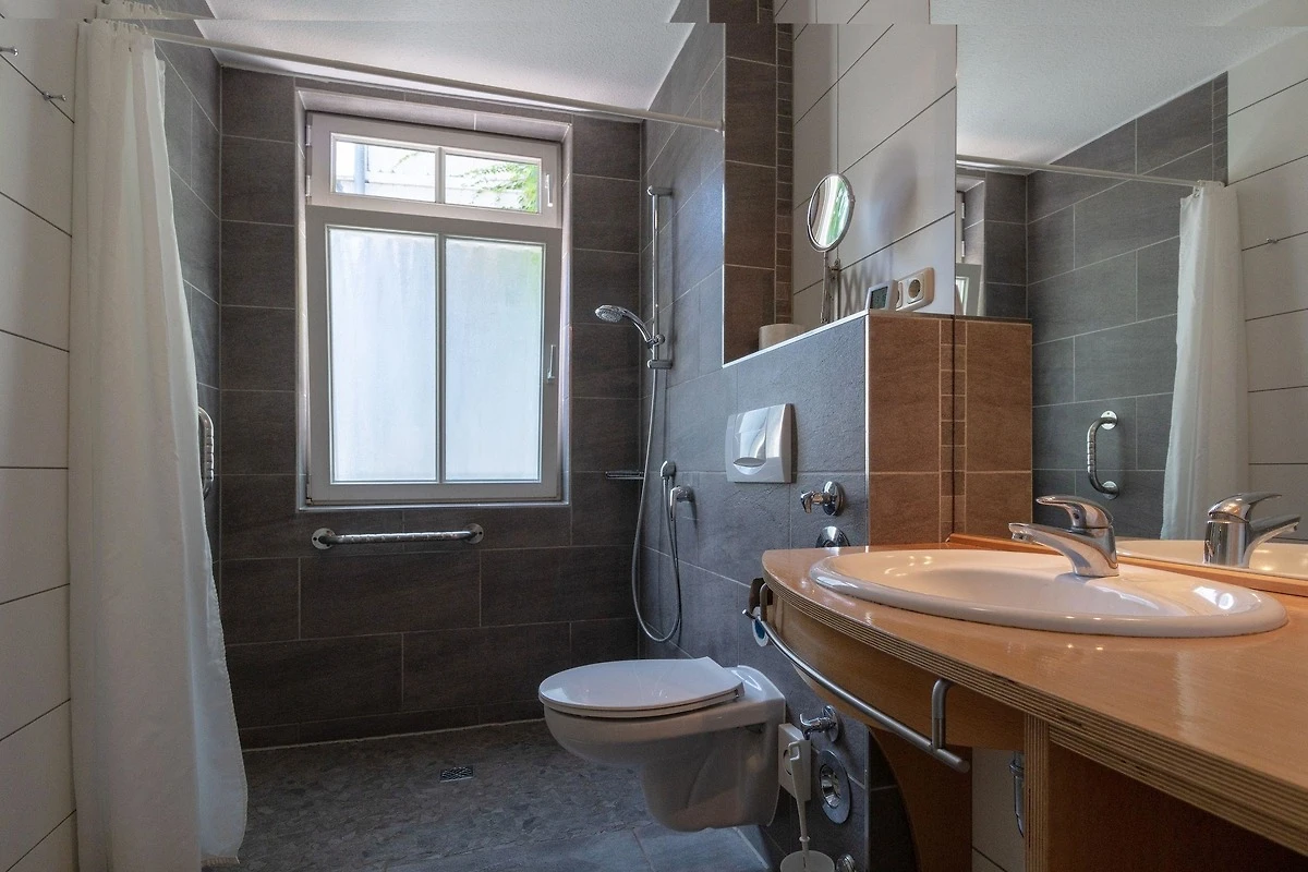 Waschmaschine und Trockner können gegen Gebühr im Keller des Hauses genutzt werden.