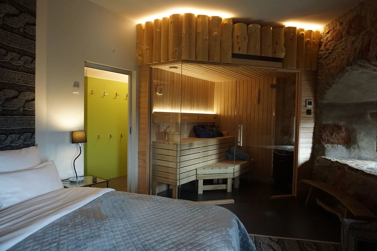 Das Apartment richtet sich an Paare, und Familien mit zwei Kindern und bietet mit einem Schlafzimmer, einer Sauna und einer Wohnküche mit Bett ein grosses Mass an Privatssphäre sowie mit einer integrierten Küche die Möglichkeit von Restaurants unabhängig zu sein. Das Schlafzimmer verfügt über eine Klimaanlage und eine Sauna.