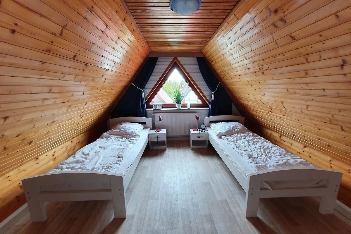 Additionally, our houses meet the needs of the elderly insofar, as we offer a sleeping-room on the ground floor. Kitchen, bathroom and living room are also situated on the ground floor. For two people, there is no need to climb stairs. Another 2 people and 1 baby/infant can sleep upstairs.