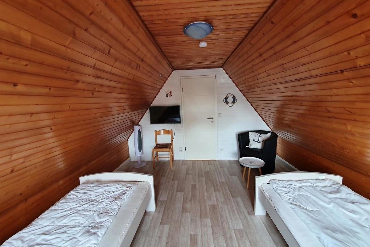 2 twin beds with nightstand and reading lamp, Satellite-TV and wardrobe. Additional Hauck portacrib (bed for baby / infant till age of 3) is available free of charge.
