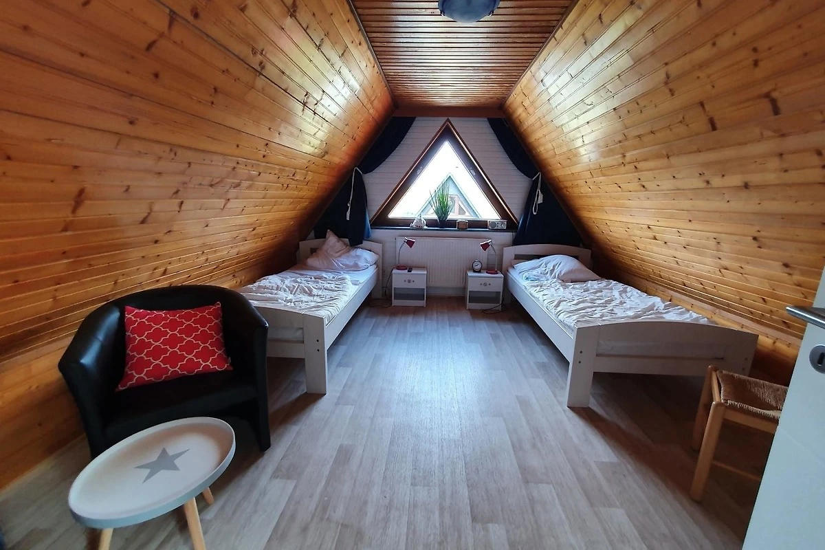 Additionally, our houses meet the needs of the elderly insofar, as we offer a sleeping-room on the ground floor. Kitchen, bathroom and living room are also situated on the ground floor. For two people, there is no need to climb stairs. Another 2 people and 1 baby/infant can sleep upstairs.