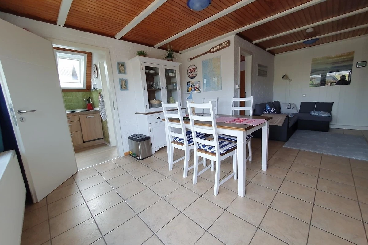 In unserem kombinierten Wohn-/Essbereich mit Couch, Essgruppe und Tisch sowie mit einem 124 cm grossen Flatscreen mit SmartTV (Internet) und grosser sortierter Programm- und Sendervielfalt in Deutsch und weiteren Sprachen, kostenfreies und unbegrenztes Internet (ortsübliches, langsames) WLAN, USB-Wandladesteckdose, Hi-Fi-Kompaktanlage Internet- und DAB+-Radio sowie grosse und grosse Spielesammlung für die ganze Familie können auch Schlechtwettertage super überbrückt werden. Eine Wetterstation mit satellitengesteuerter Viertages-Wettervorhersage ist ideal für die Ausflugsplanung. Garderobe, Spiegel und Schuhablage befinden sich im Eingangsbereich. Grosse Fenster lassen Sie auf den Deich blicken.