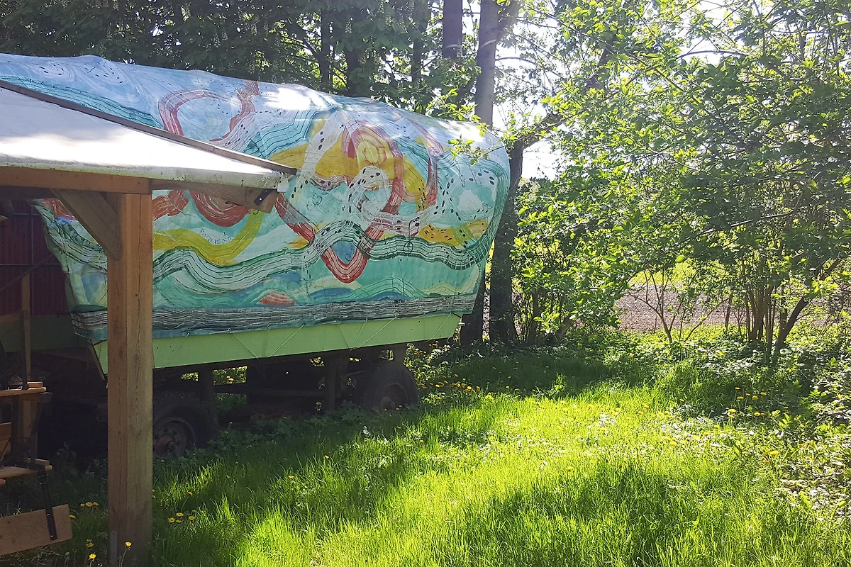 Vergessen Sie Fahrkomfort: Das Fundament besteht aus rostigen Traktoranhängern mit platten Reifen. Sie stehen bombenfest. Sie fahren nirgendwo hin.