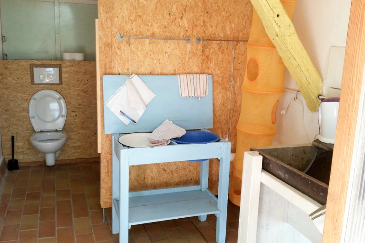 Das "Bad" ist in einem abgeranzten Schuppen, 20 Meter entfernt.