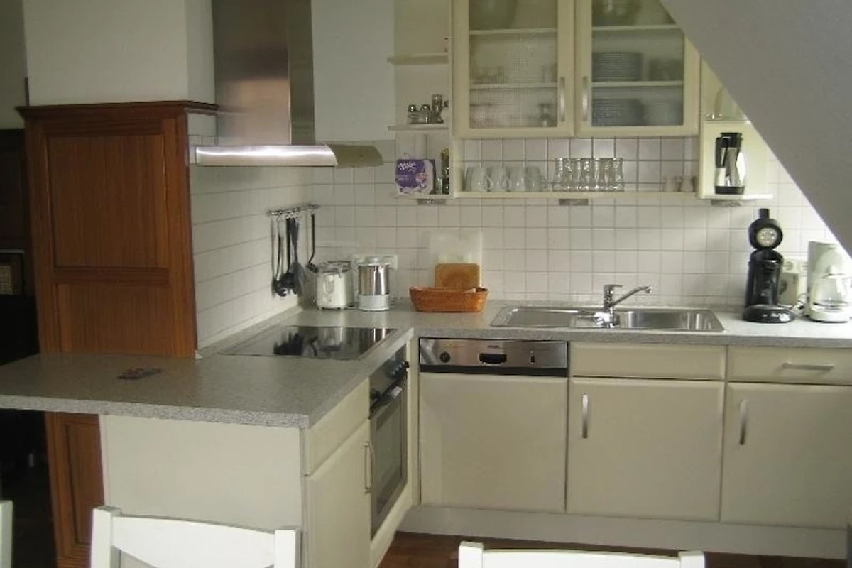 Die Wohn- und Schlafräume sind modern eingerichtet. Die Küche ist voll ausgestattet mit Spülmaschien ect. Auf den Böden sind Fliesen und Parkett verlegt.