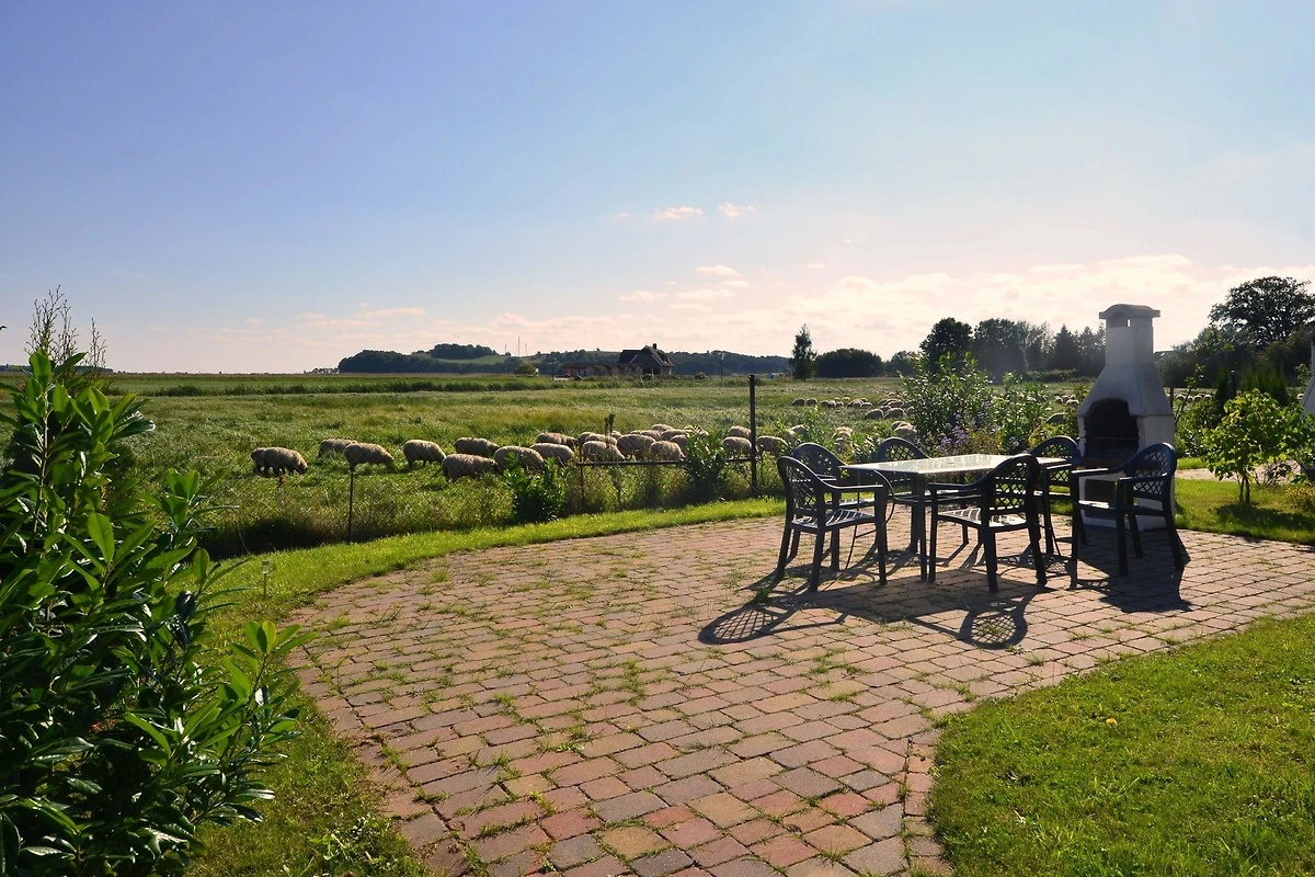 Garten direkt an den Salzwiesen zum Meer hin. Gartenmöbel und Aussengrill,