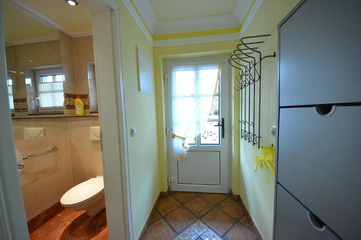 Im Haus gibt es eine Gästetoiletten und ein Bad mit WC, beide im creme - Farbton Pergamon.