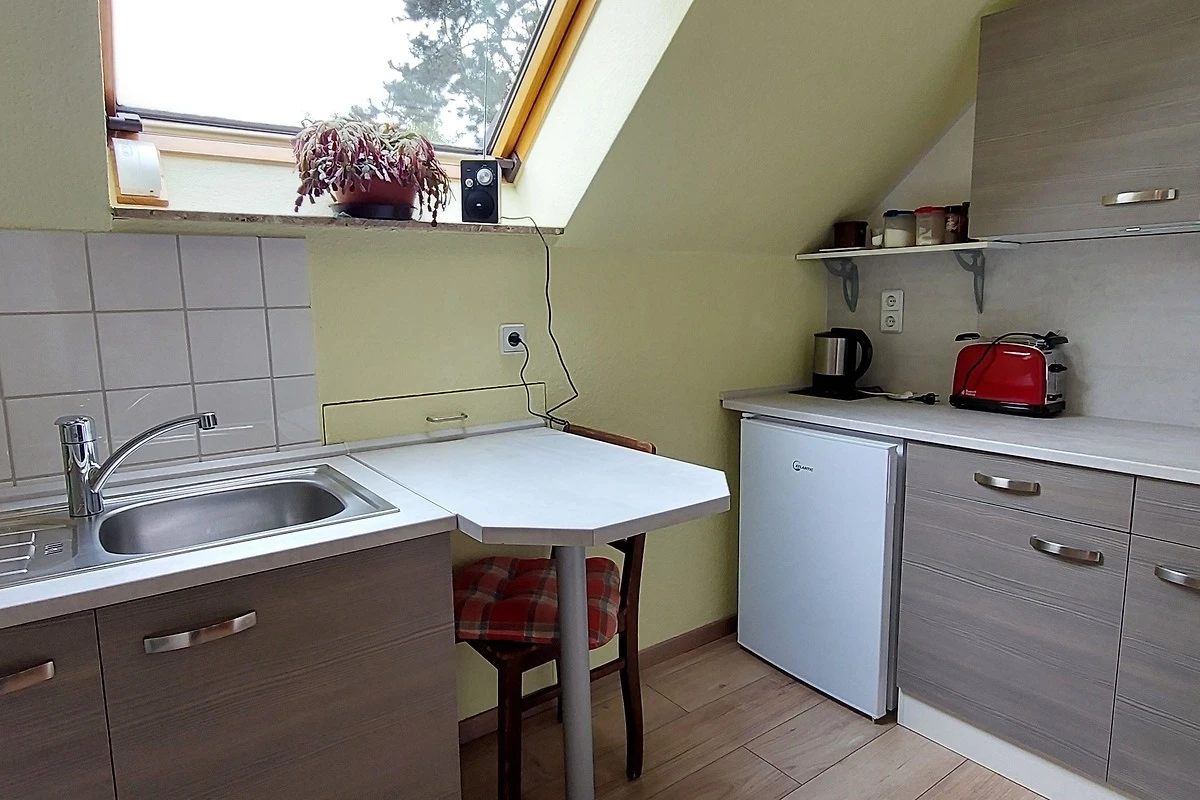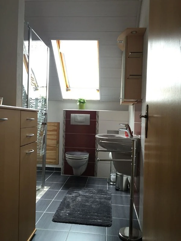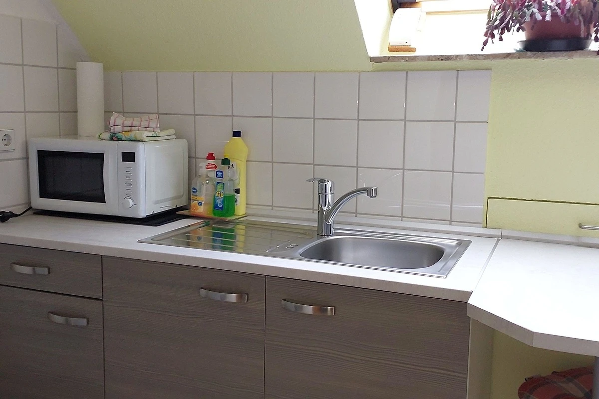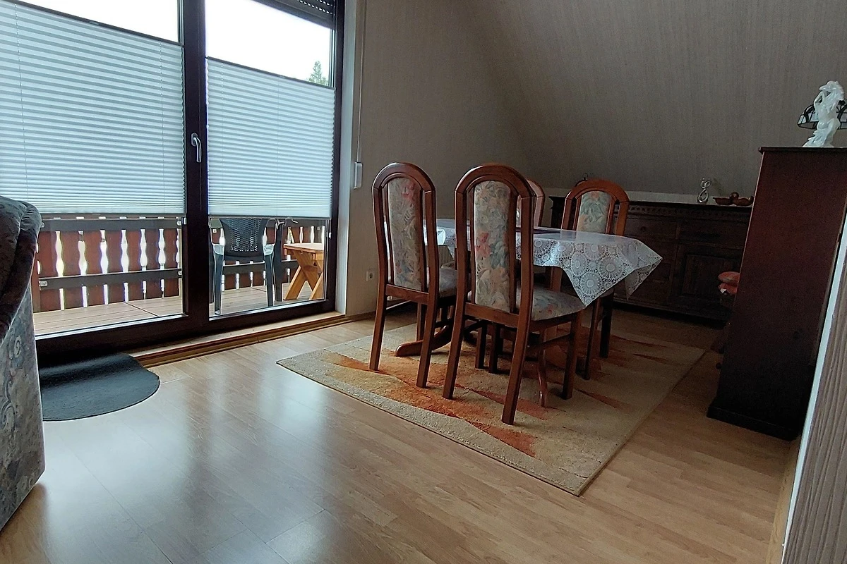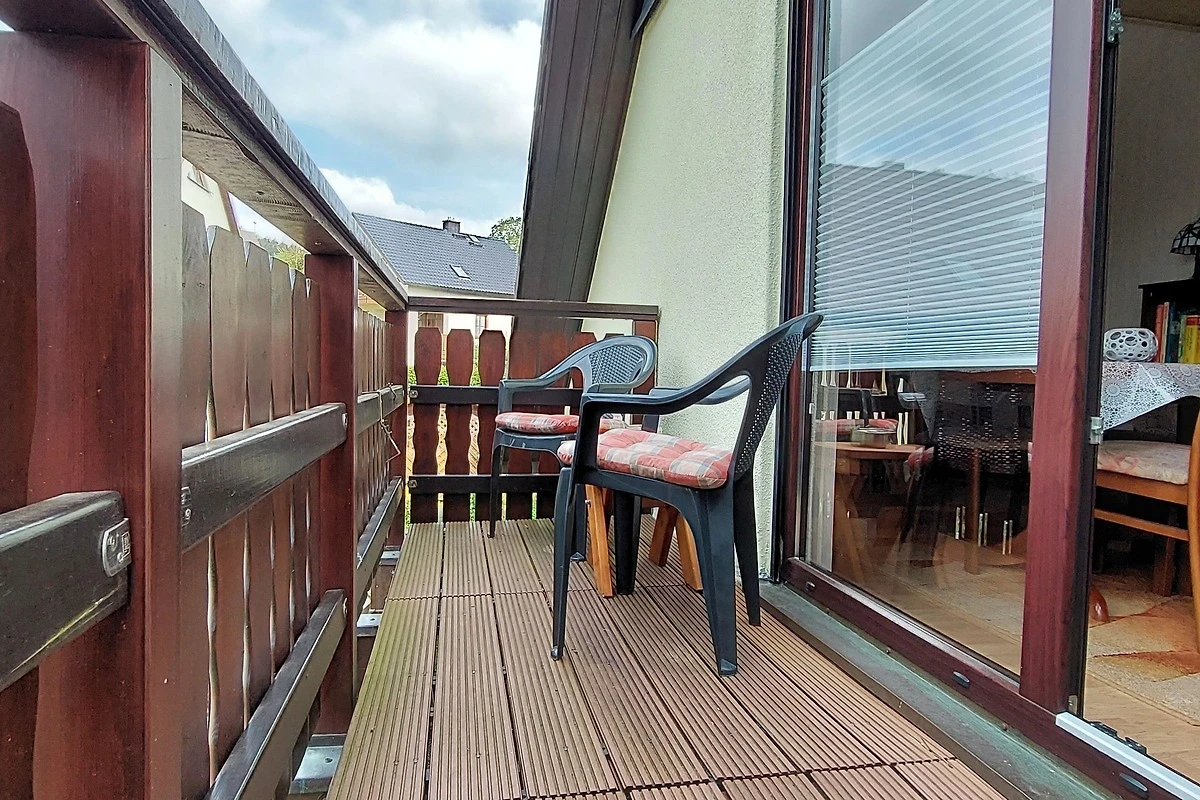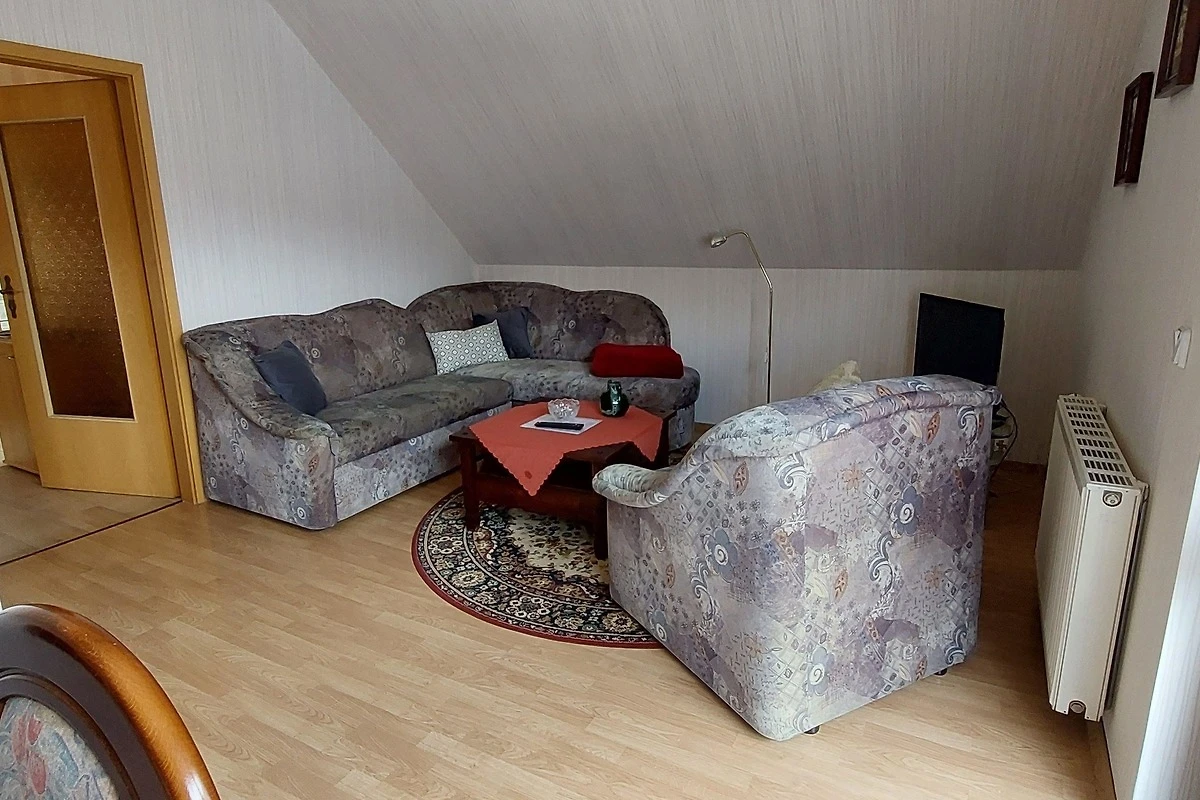 Die Obergeschosswohnung ist hell und freundlich eingerichtet. Wohnzimmer mit Balkon und Doppelbettchouch,Schlafzimmer mit Doppelbett, Aufbettung möglich, Küche mit guter Austattung und ein modernes Bad mit bodengleicher Dusche.